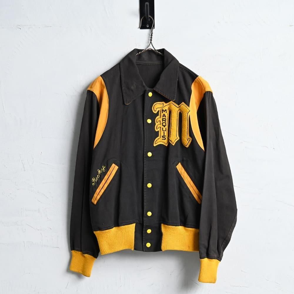 "MARQUIS" BLACK COTTON TWILL AWARD JACKET with EMBROIDERY(Around 1950'S/GOOD CONDITION)