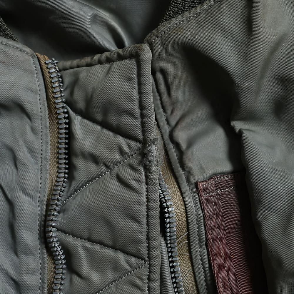 詳細:GOOD USED CONDITION。全てのリブ箇所に破れ・ダメージあり。ナイロン面にシミ・薄汚れあり。火の粉によるピンホールのような溶け箇所あり。全体的にナイロンの生地は厚く、雰囲気のある良いUSEDコンディションです。