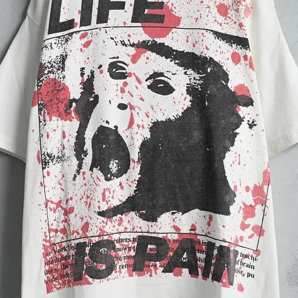 "LIFE IS PAIN" PRINT T-SHIRT by DON ROCK(1990'S/GOOD CONDITION)