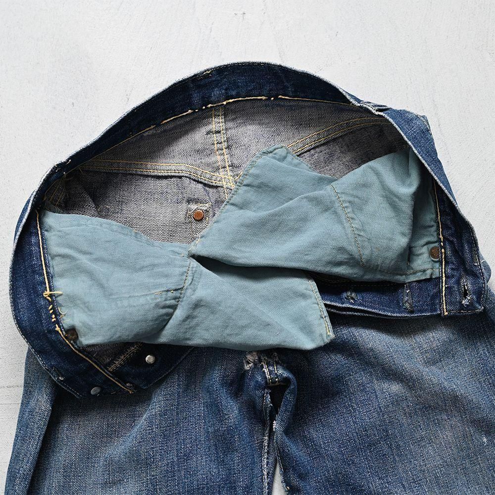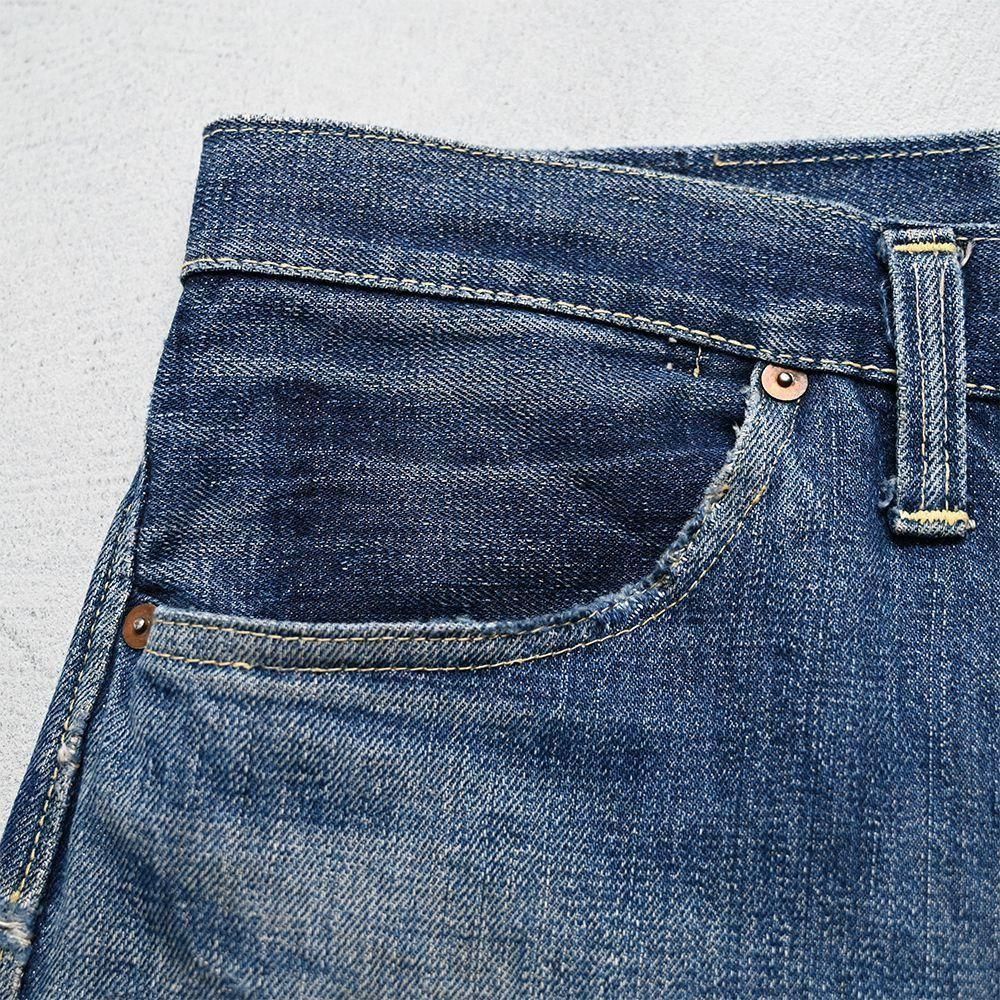 詳細:GOOD USED CONDITION。右コインポケットは取り外されていました。前左右ポケット口は弊社でリステッチしました。所々スレ・解れ・ダメージ箇所、リペア箇所あり。全体的には良好なUSEDコンディションです。