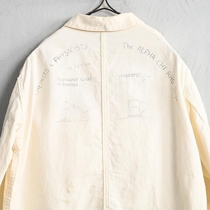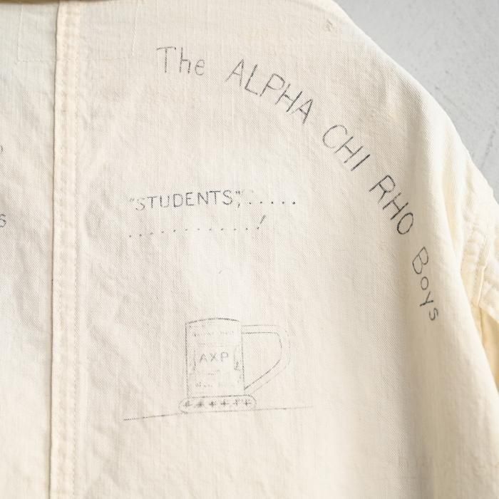 1930's〜CLEAR FIELD WHITE COTTON MEMORIAL JACKET with HAND-DRAWN