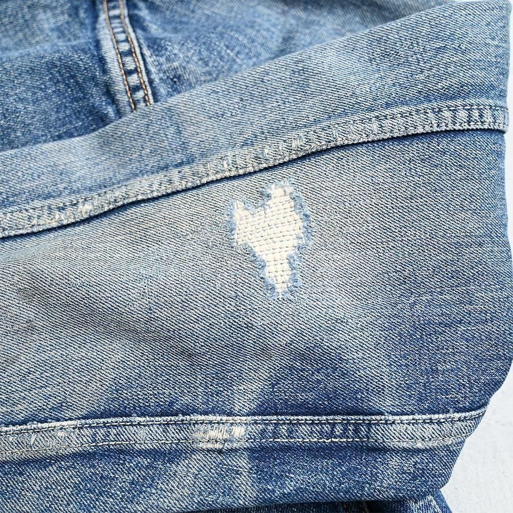 所々ダメージ・補修箇所はありますが現状で問題なく着用して頂けるファッションピース。ダブルエックスらしい綺麗なインディゴブルーが魅力の一枚です。