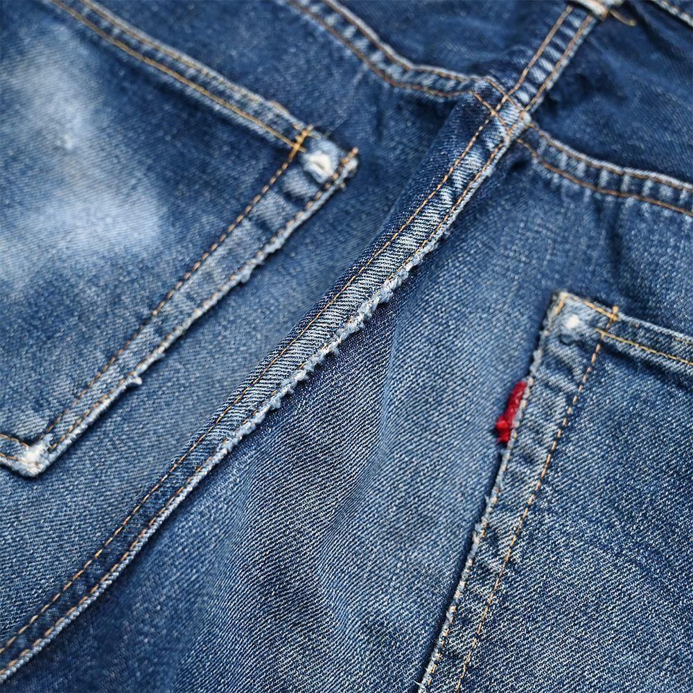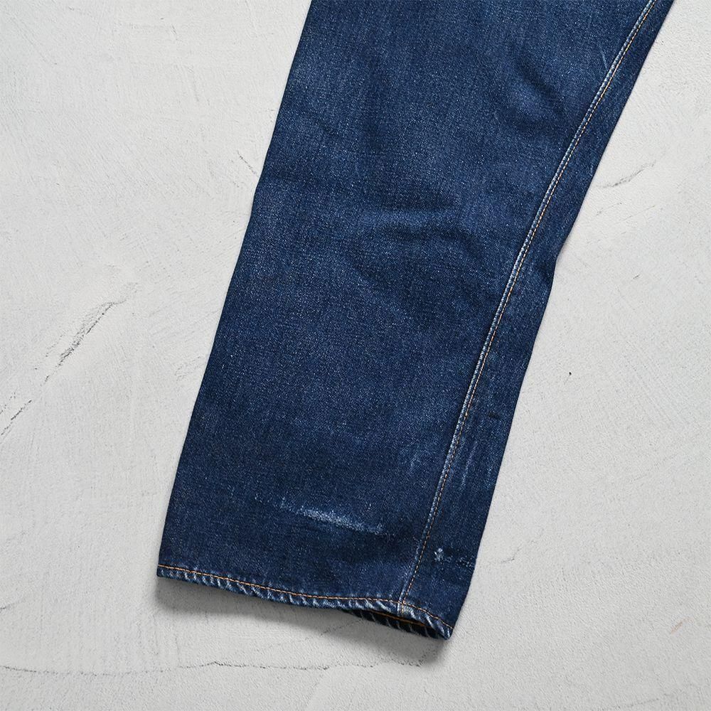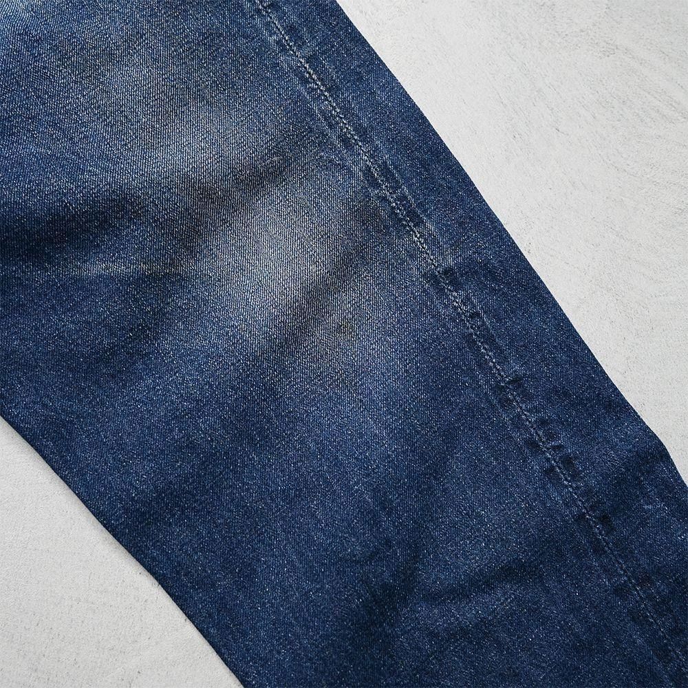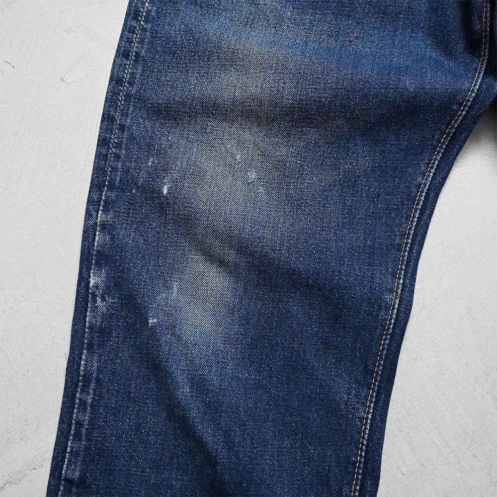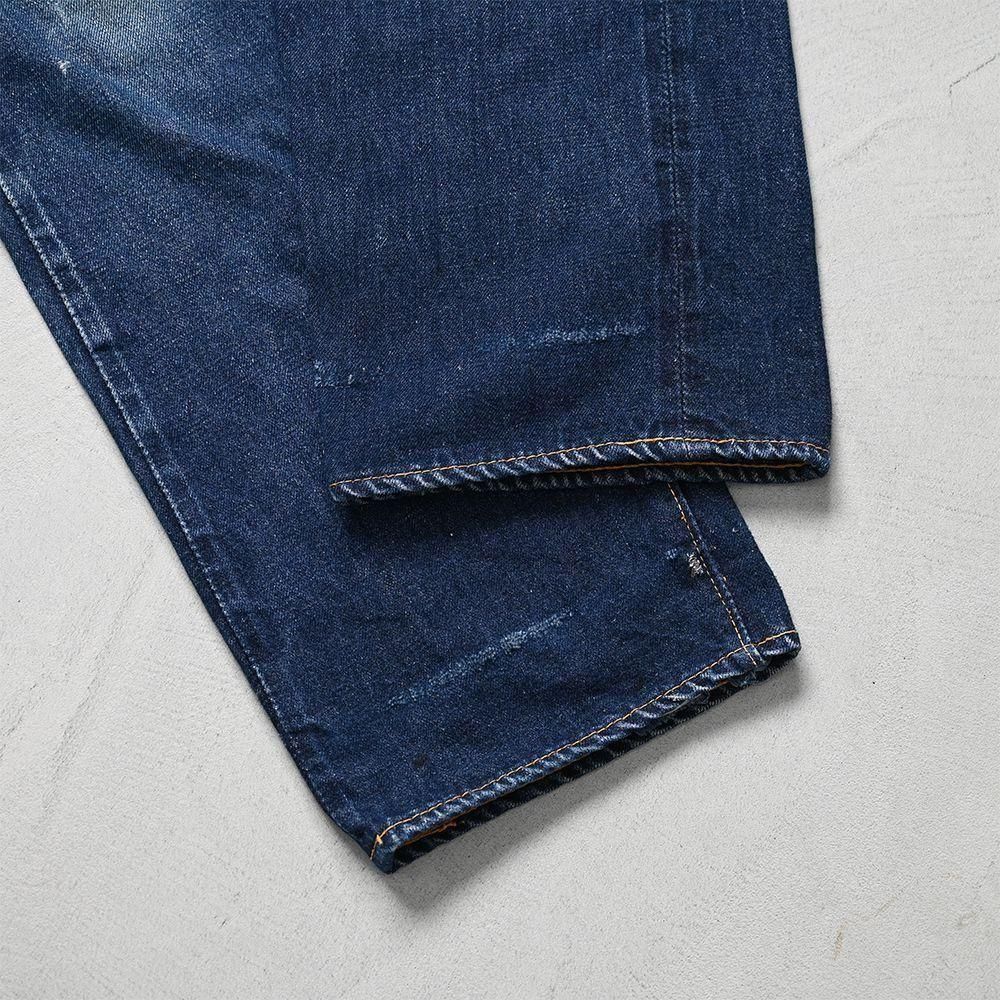 詳細:GOOD CONDITION。左ヒップポケット・左裾インシームにタタキリペアあり。前右ポケット口に補修箇所あり。右膝付近・左右ヒップポケット角・前後左右裾上に擦れ・解れ箇所あり。アーキュエイトにステッチ飛びあり。所々細かな汚れ箇所あり。全体的に目立つような大きな汚れ・ダメージ等のない良い状態です。