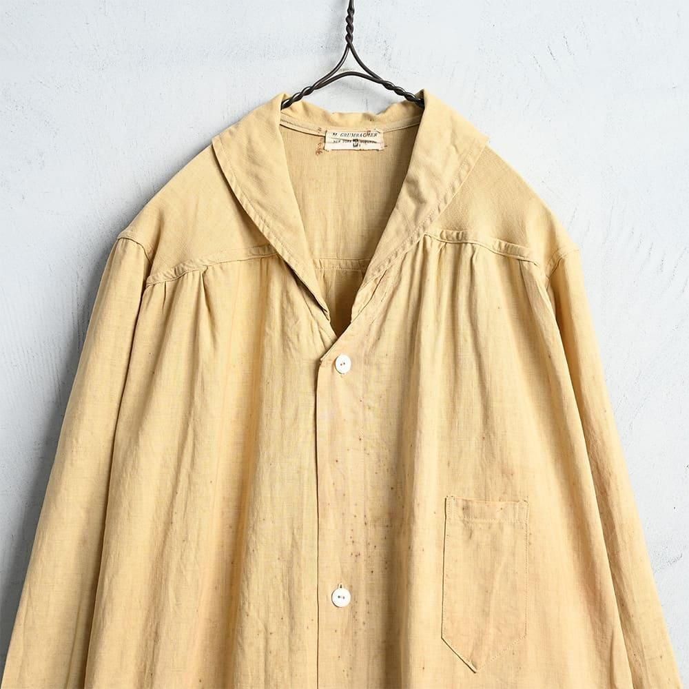 M.GRUMBACHER BROWN COTTON WORK COAT with UNIQUE DETAIL(Around 1910'S/VERY GOOD CONDITION)