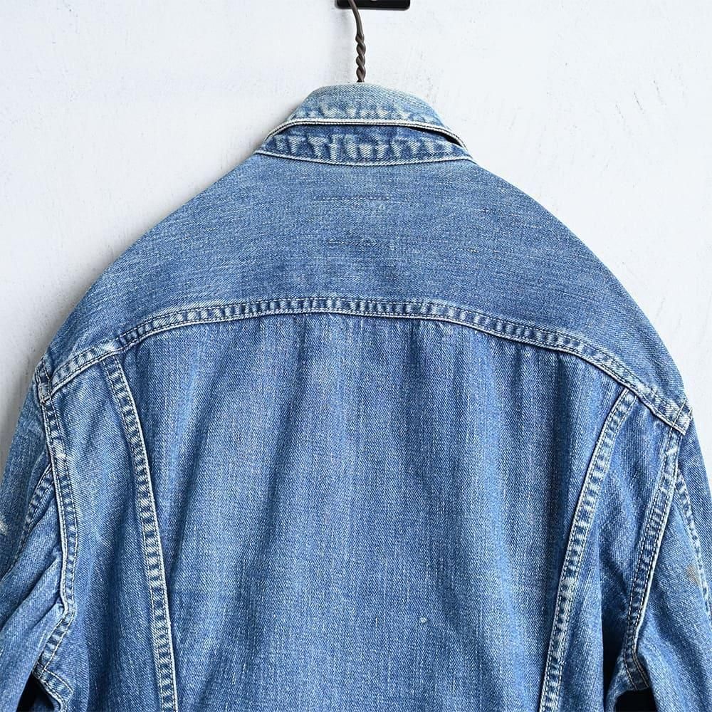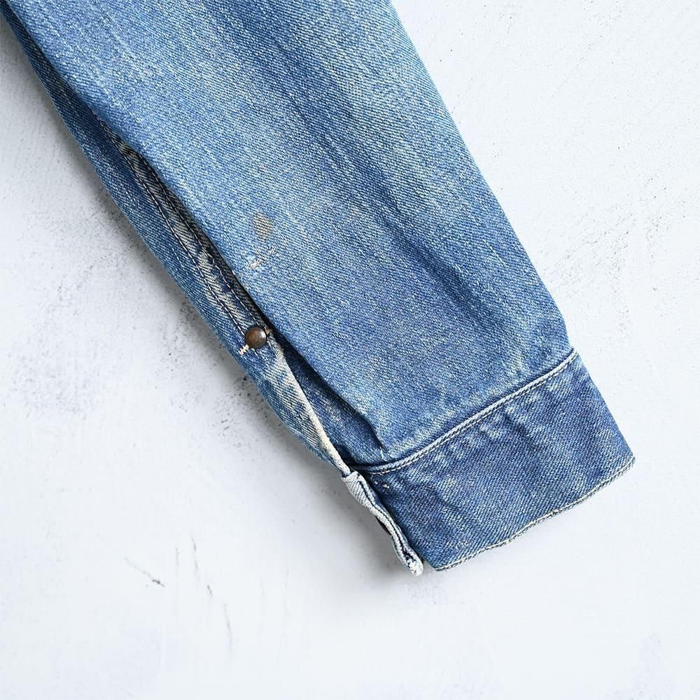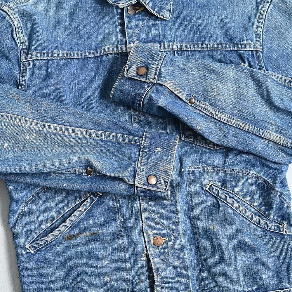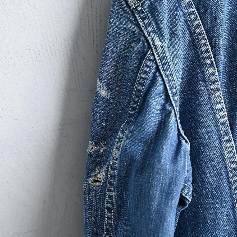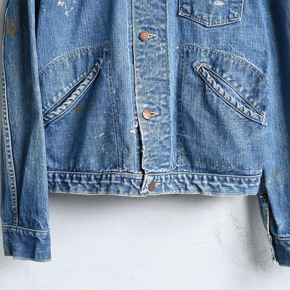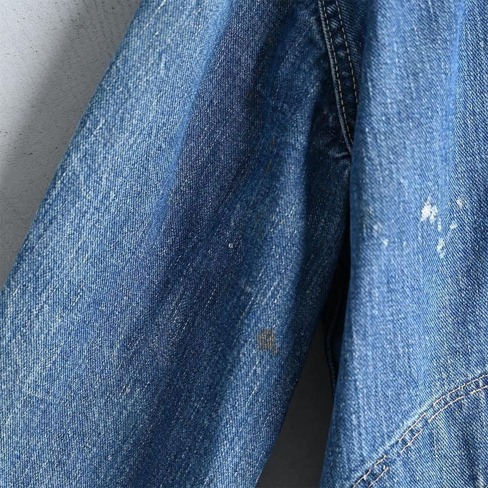 詳細:GOOD USED CONDITION。タグに解れあり。ペンキ・薄汚れあり。襟元・袖先・裾・前立てにスレあり。左袖に複数破れあり。ステッチ飛び箇所あり。アタリやダメージはありますがデニム地は厚く良いUSEDコンディションです。