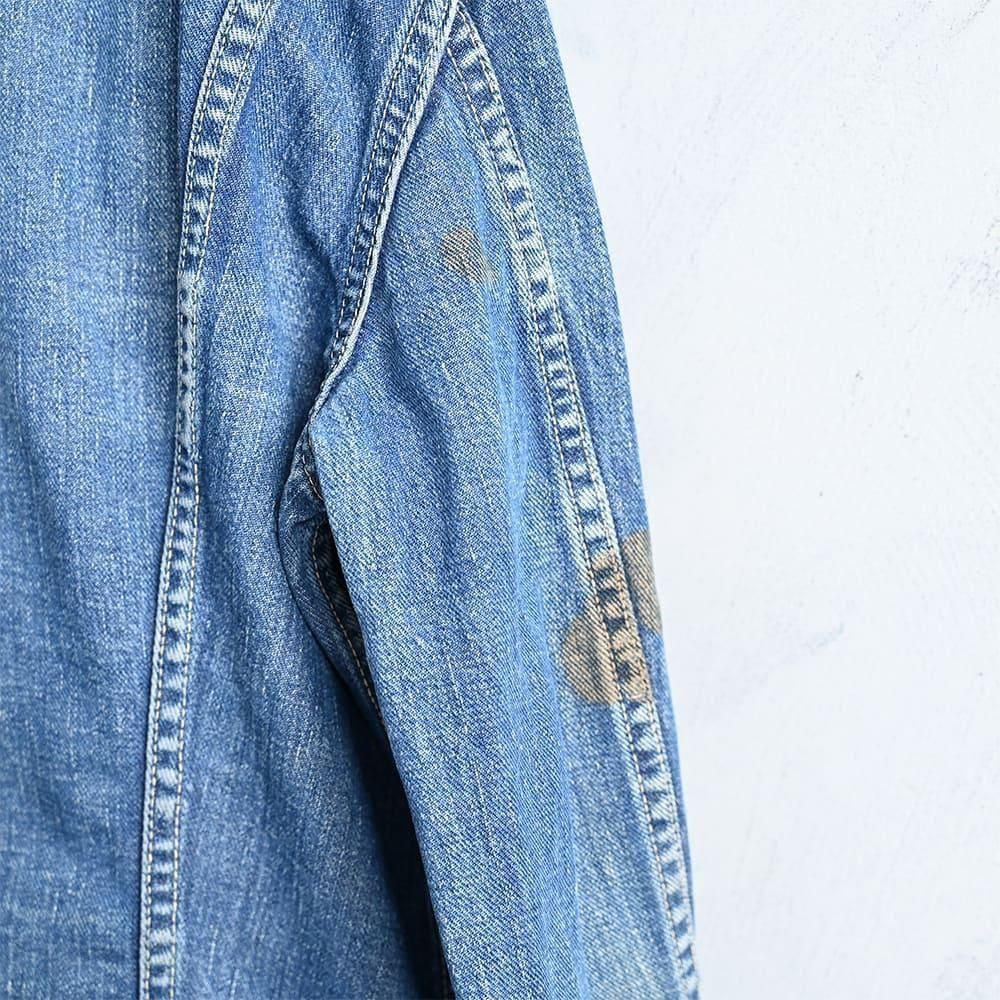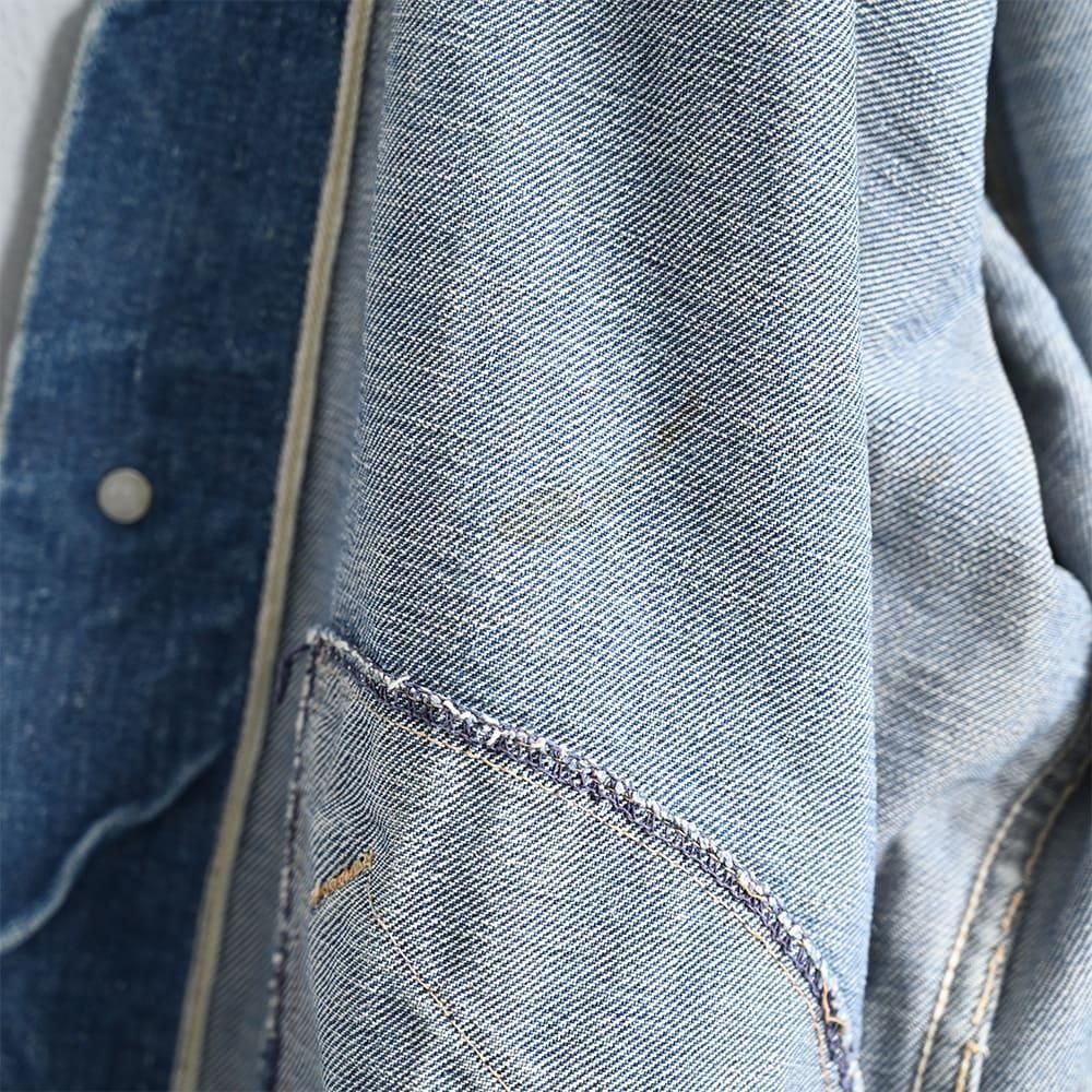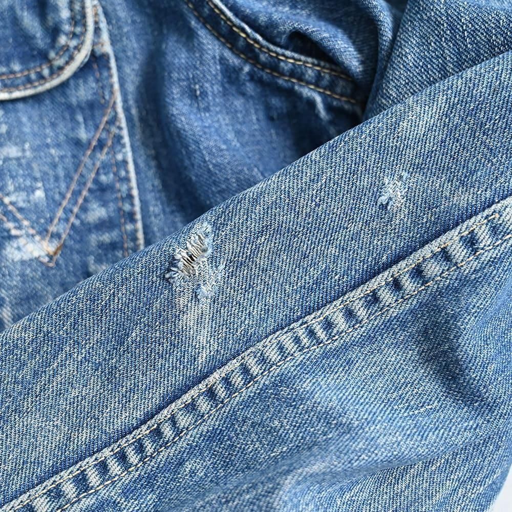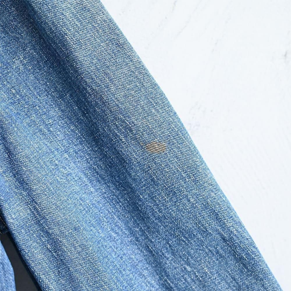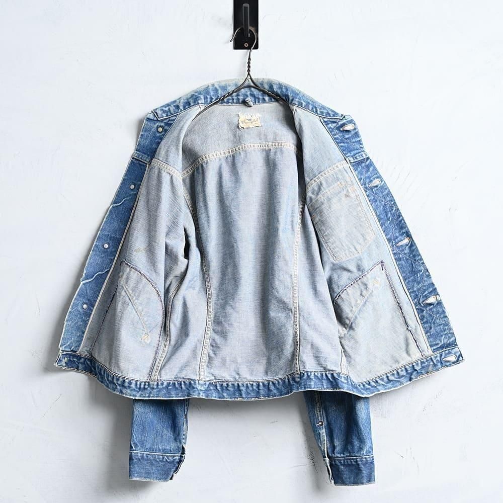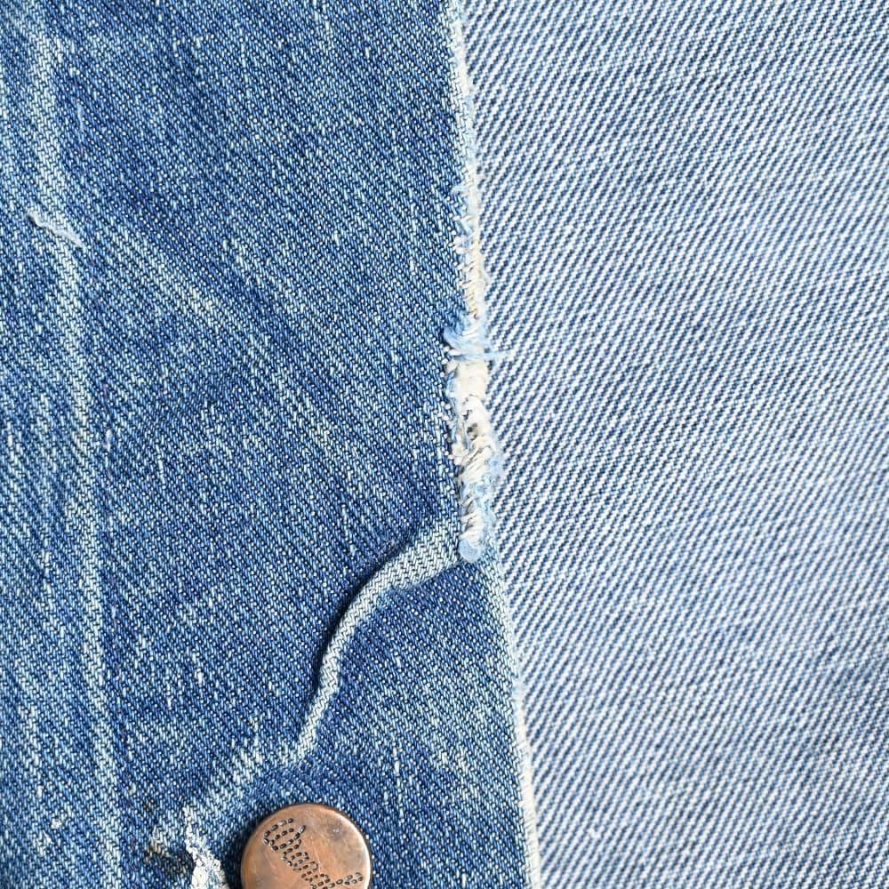 詳細:GOOD USED CONDITION。タグに解れあり。ペンキ・薄汚れあり。襟元・袖先・裾・前立てにスレあり。左袖に複数破れあり。ステッチ飛び箇所あり。アタリやダメージはありますがデニム地は厚く良いUSEDコンディションです。