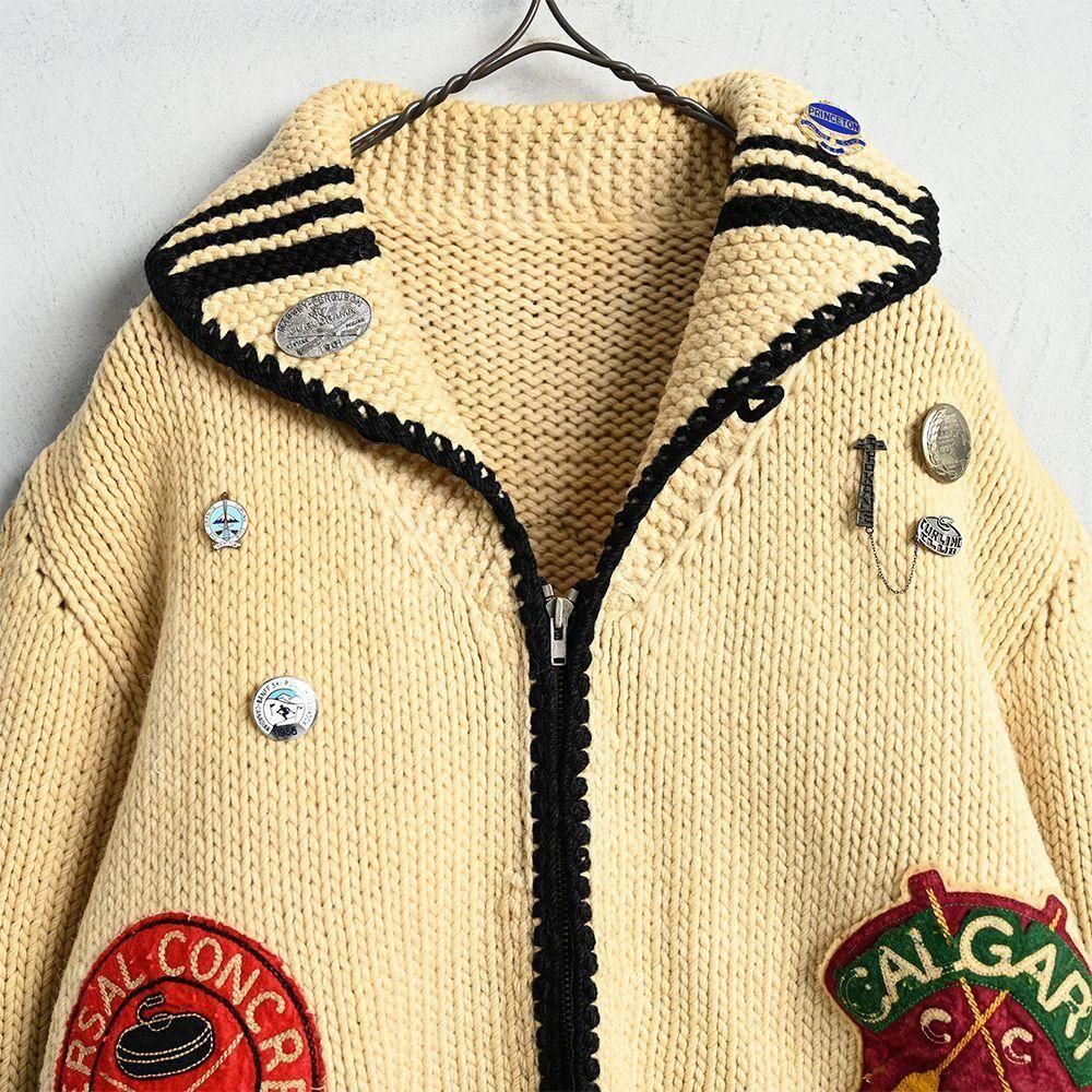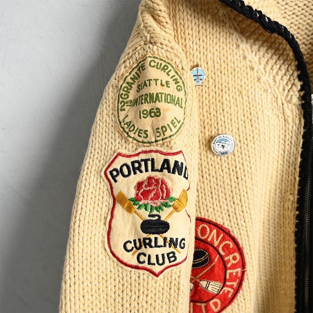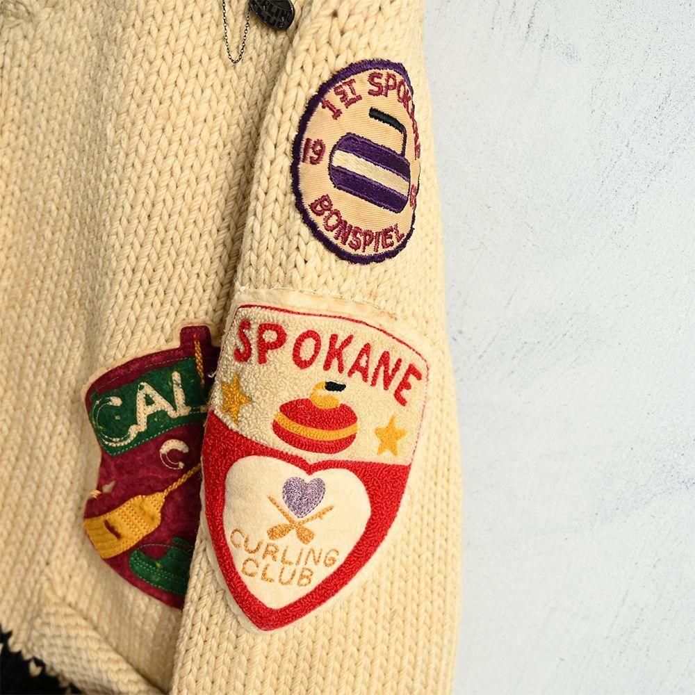 様々なカーリング関係のパッチやピンズが付いた資料的にも素晴らしいカウチンジャケット。