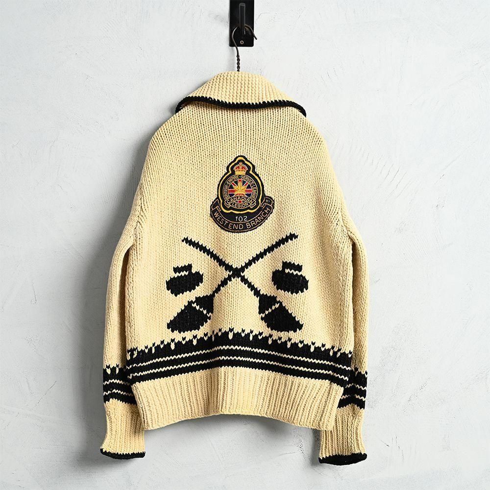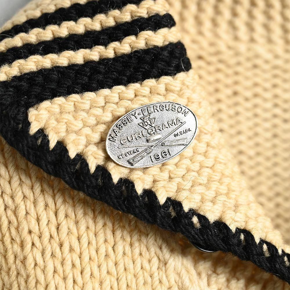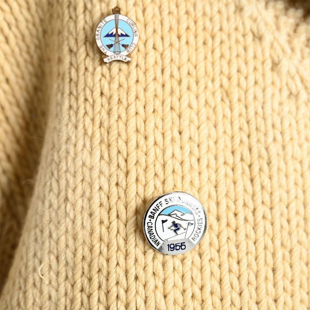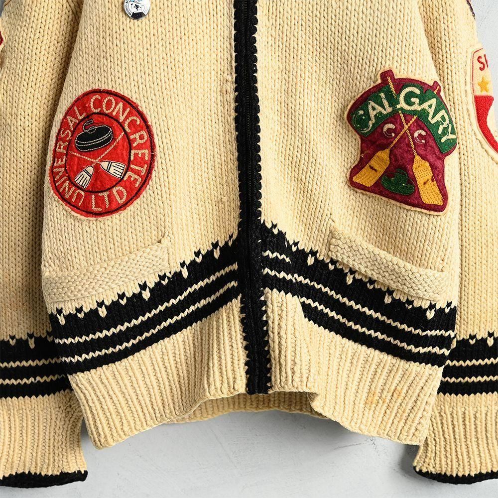 様々なカーリング関係のパッチやピンズが付いた資料的にも素晴らしいカウチンジャケット。