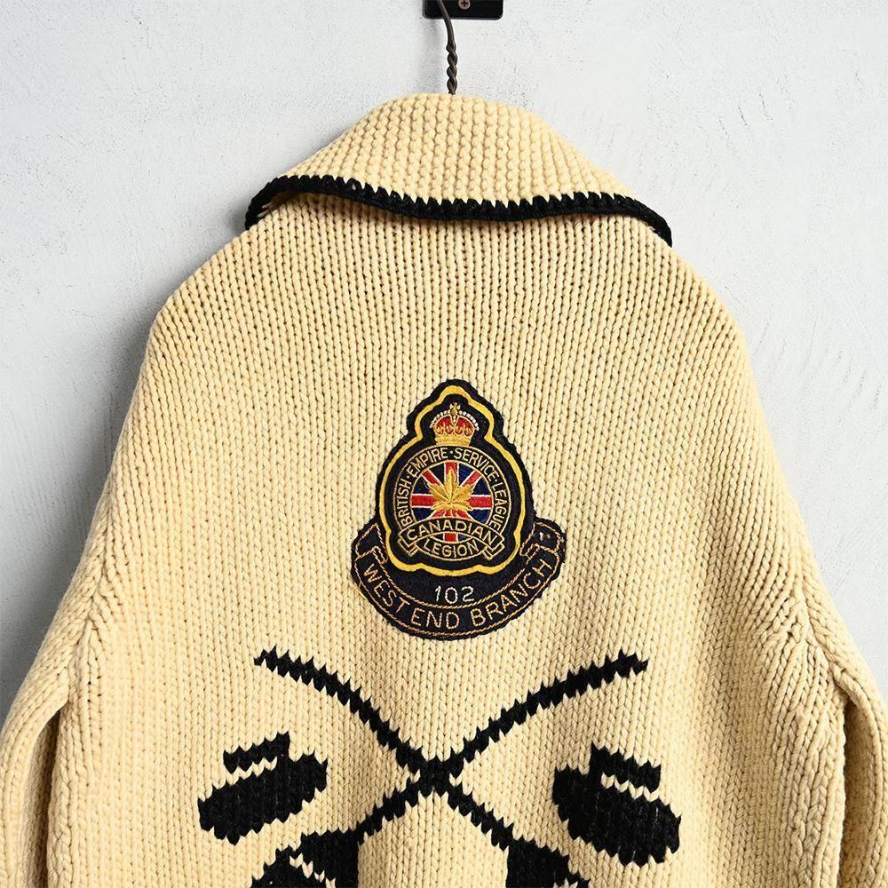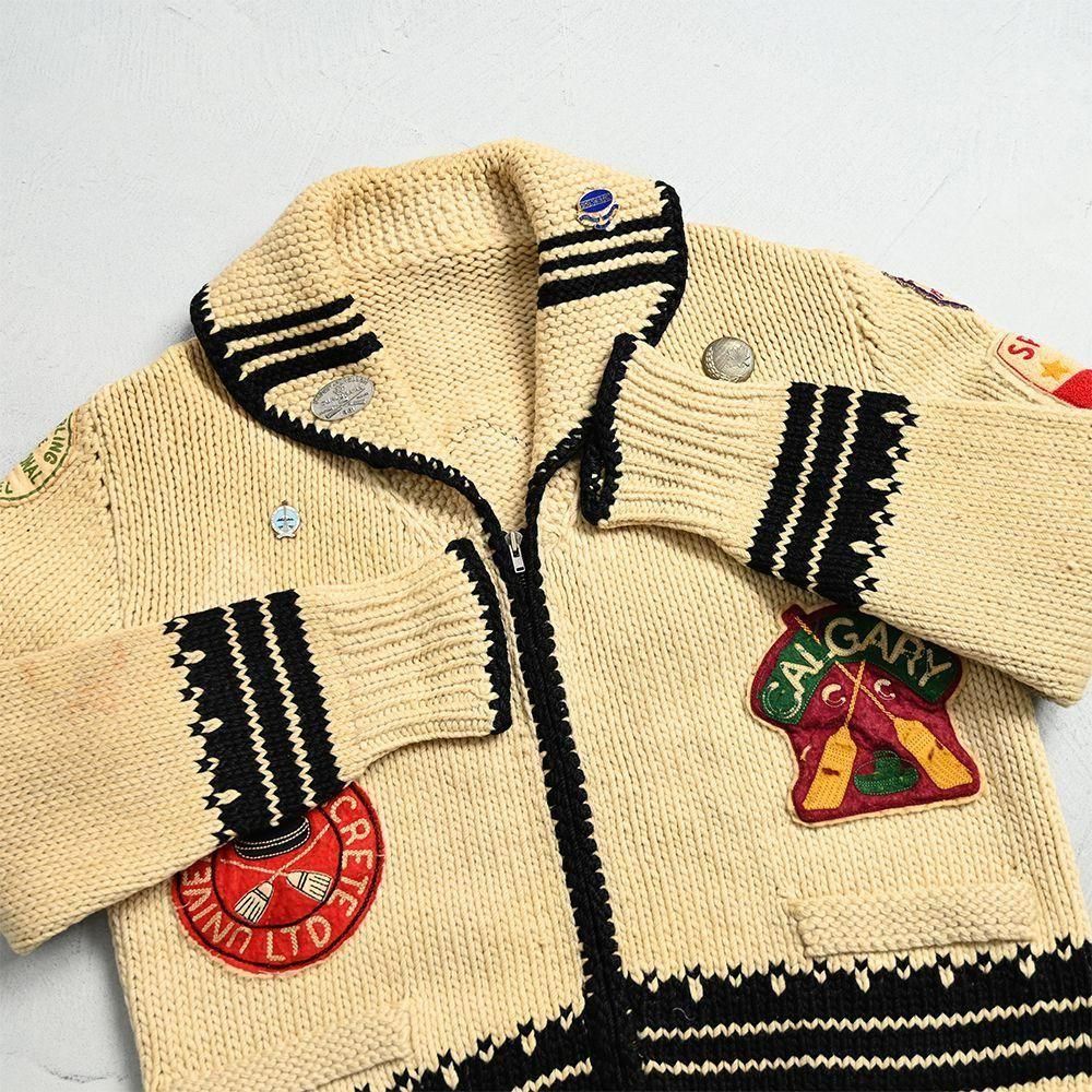 Around 1950's〜OLD SHAWLCOLLER CARDIGAN with CURLING PATCH & PINS
