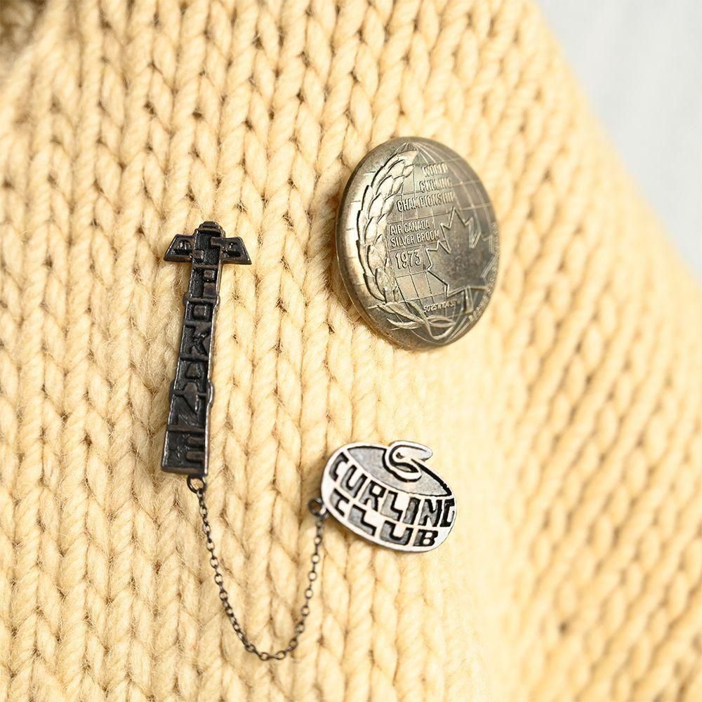 パッチやピンズが付いた豪華なカーリングセーターが入荷しました。