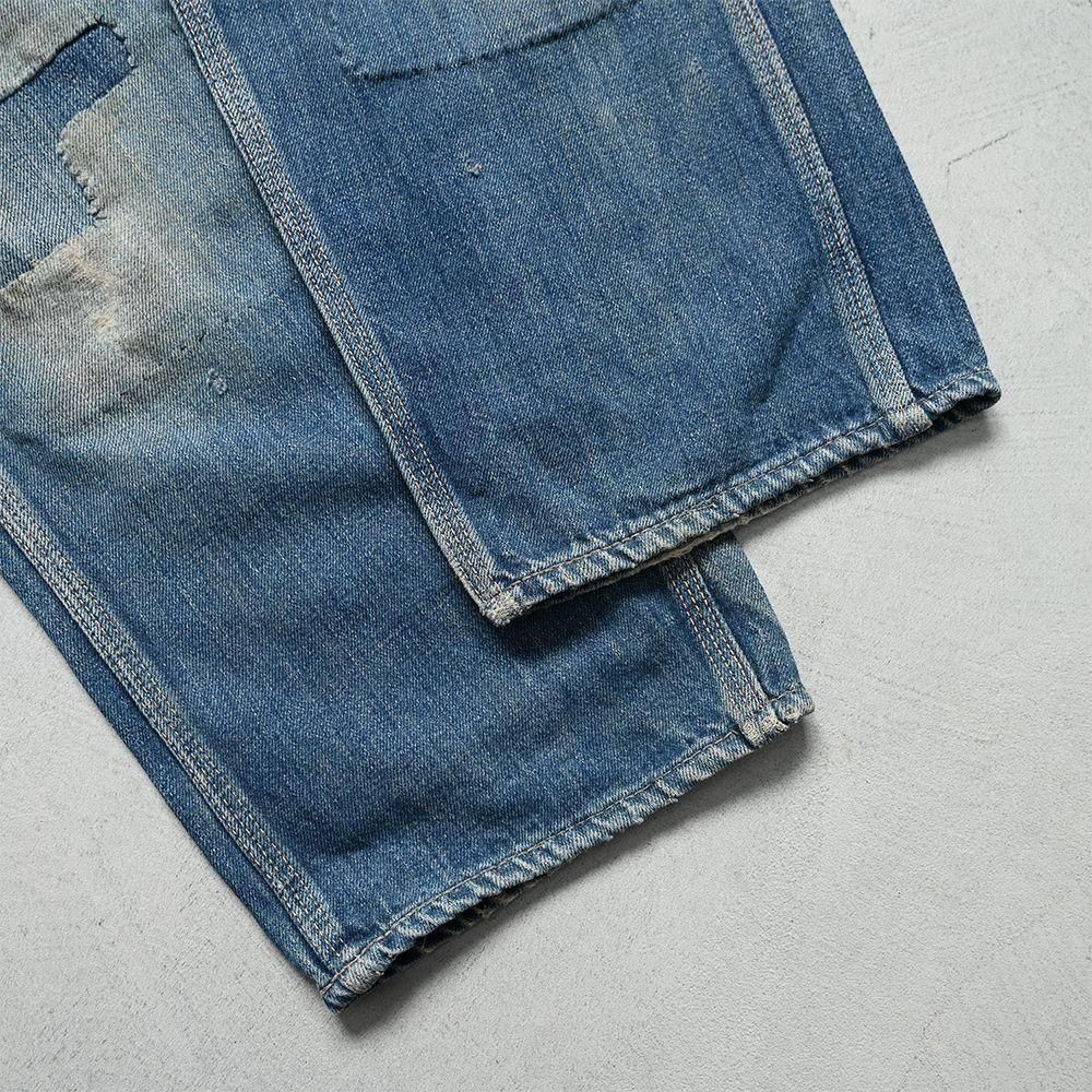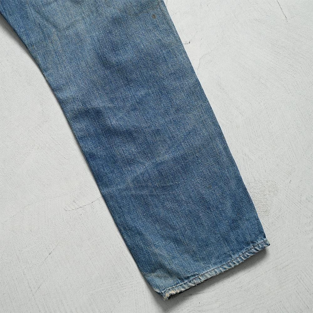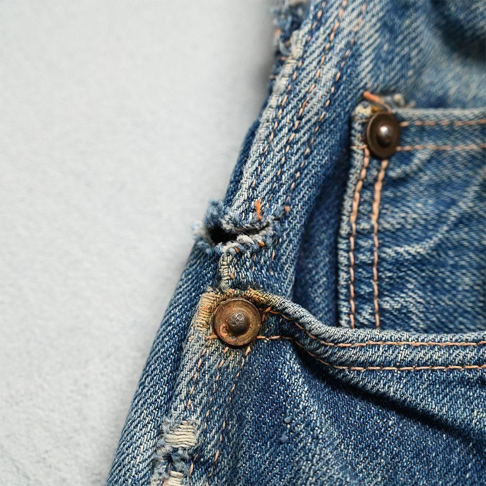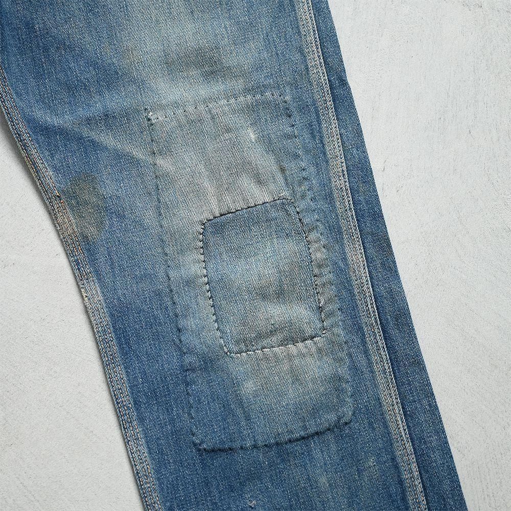 詳細:GOOD CONDITION。両膝に当時の補修箇所あり。左右ヒップポケット・ポケット脇付近・左右裾周りに細かなダメージ解れ箇所、ステッチ飛びあり。全体的に目立つような大きな汚れ・ダメージ等のない良好なコンディションです。