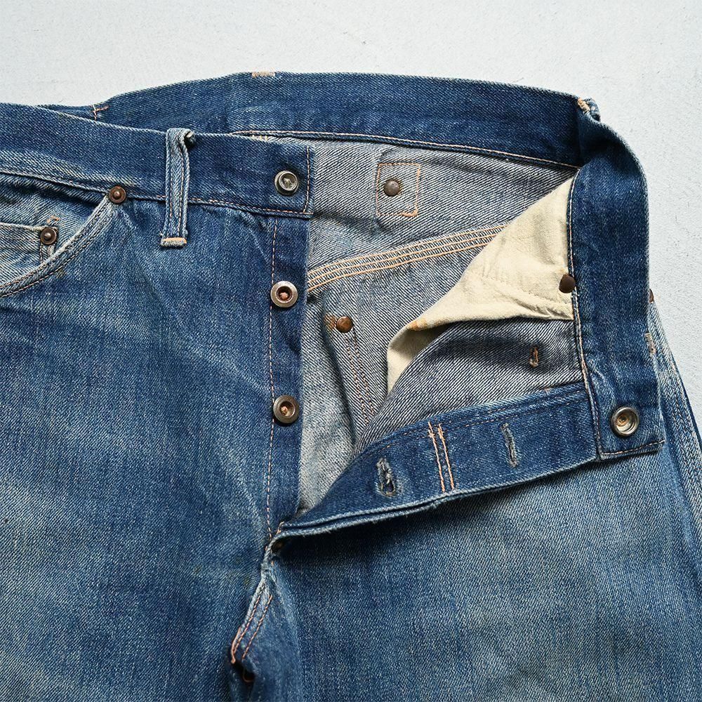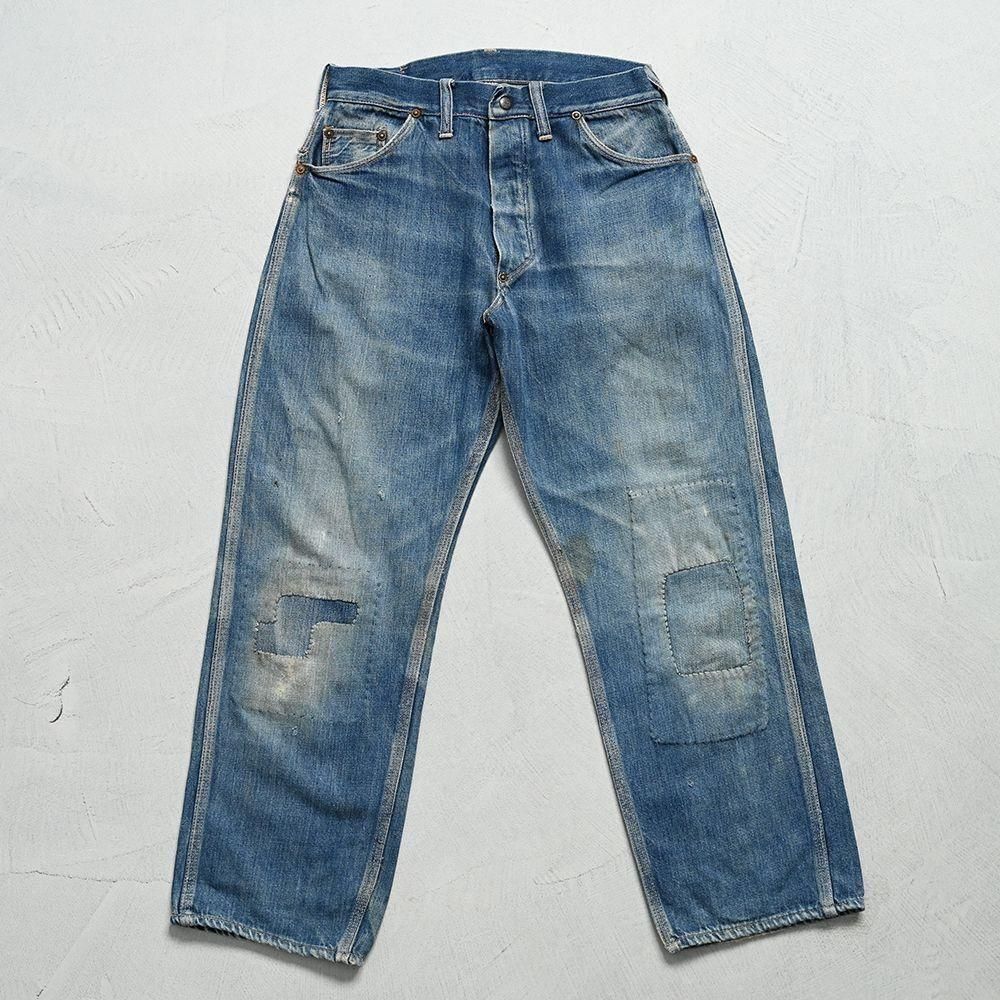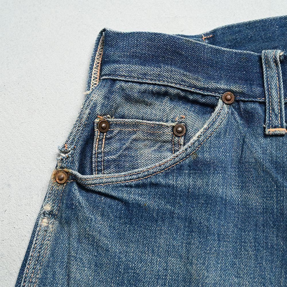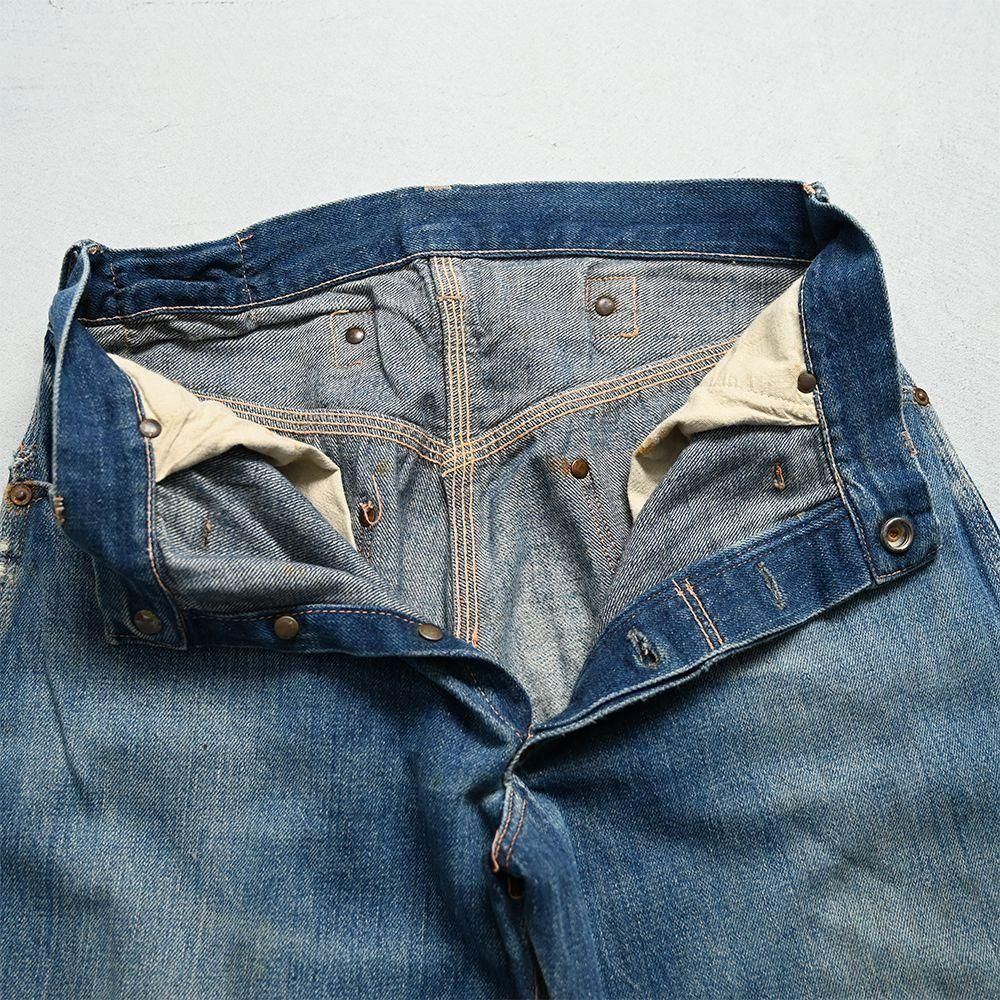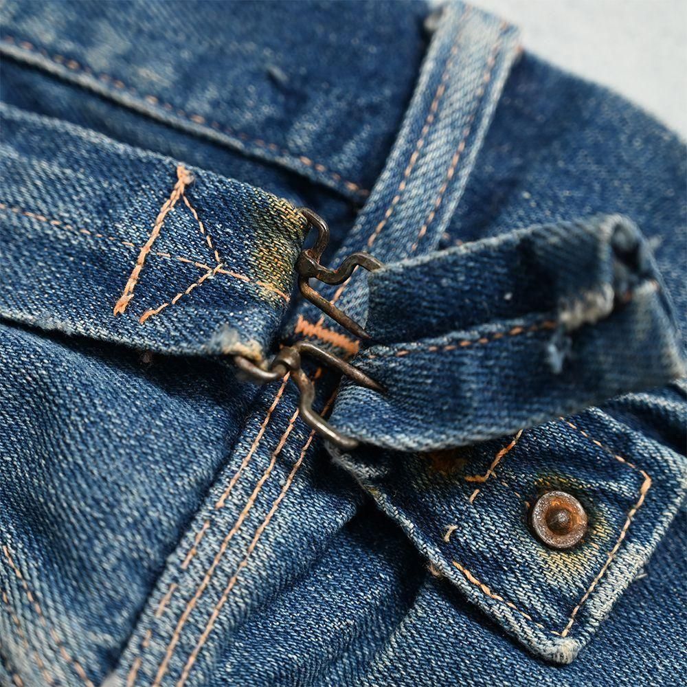 詳細:GOOD CONDITION。両膝に当時の補修箇所あり。左右ヒップポケット・ポケット脇付近・左右裾周りに細かなダメージ解れ箇所、ステッチ飛びあり。全体的に目立つような大きな汚れ・ダメージ等のない良好なコンディションです。