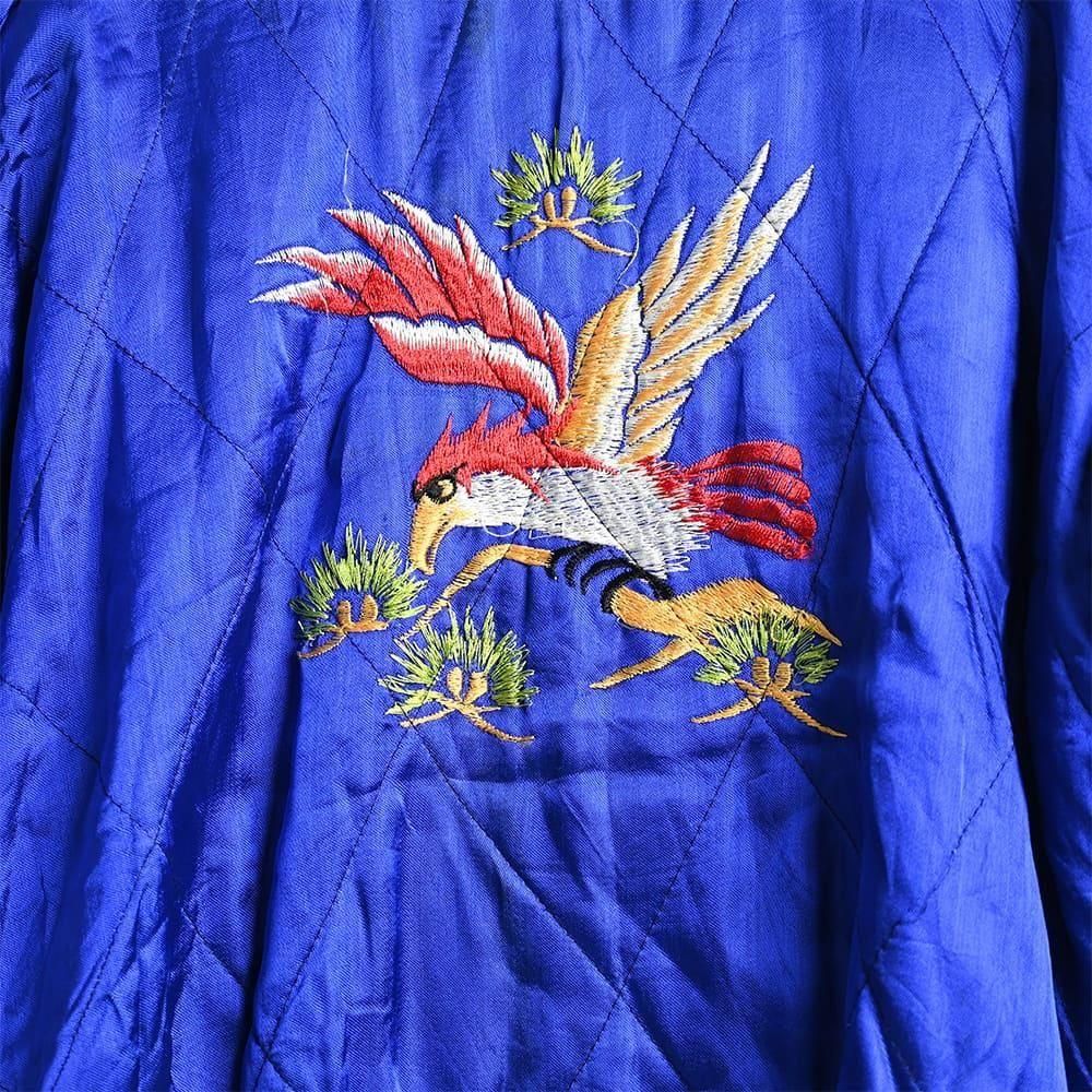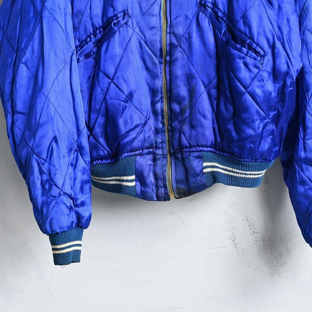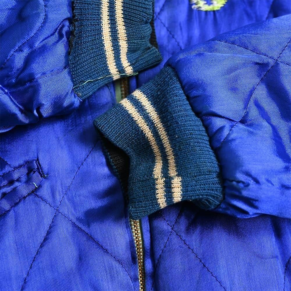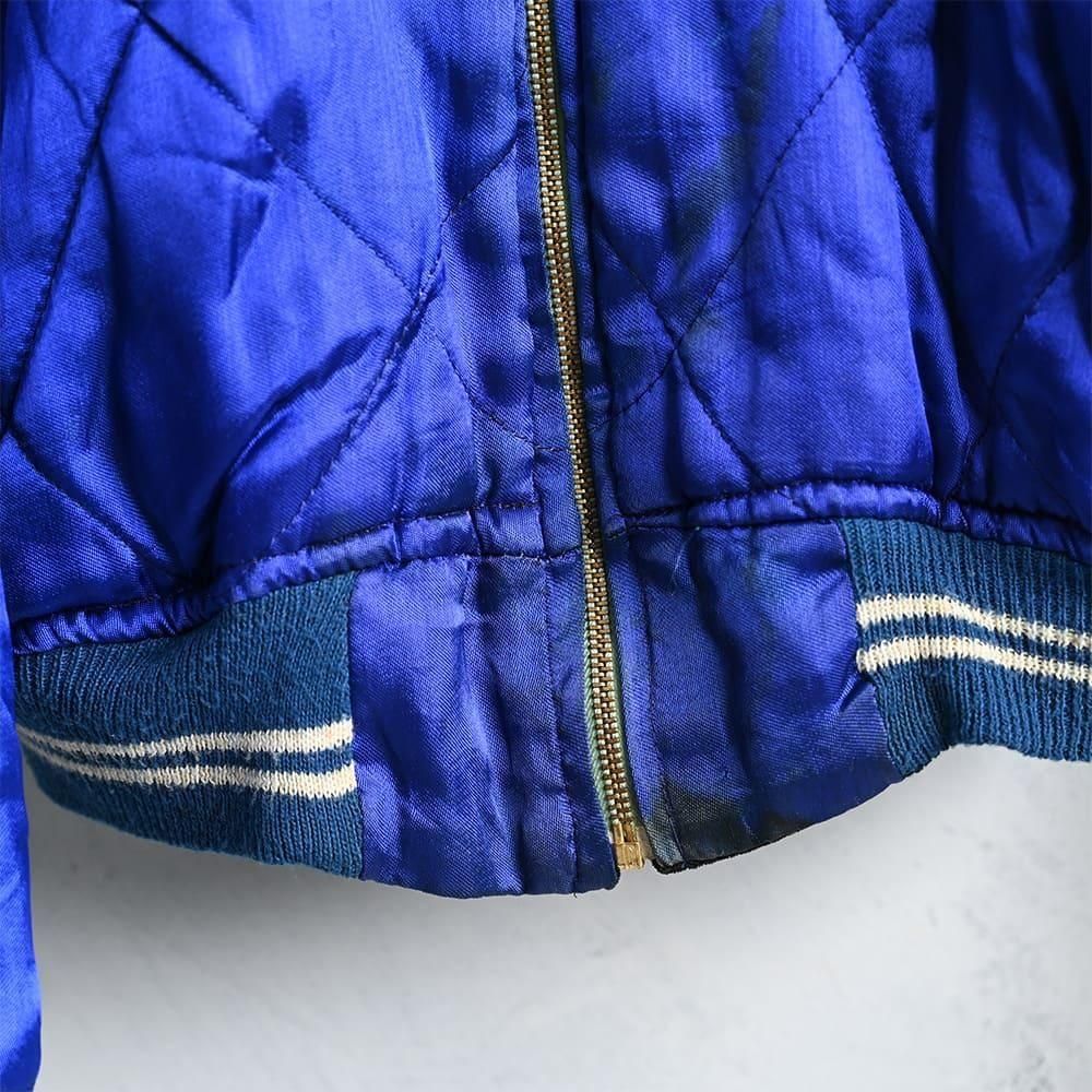 詳細:GOOD CONDITION。別珍面:経年による若干のフェイド感あり。フロントポケット付近にリペアあり。薄いシミ程度あり。サテン面:経年による薄汚れ・シミ程度あり。右胸の刺繍に解れあり。キルティングのステッチに飛び箇所あり。目立つ汚れや大きなダメージなく良いコンディションです。