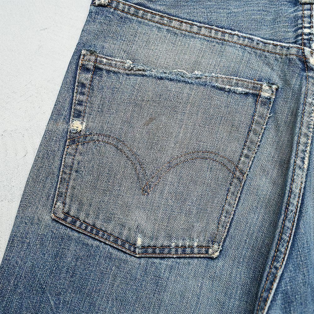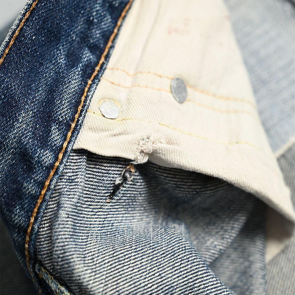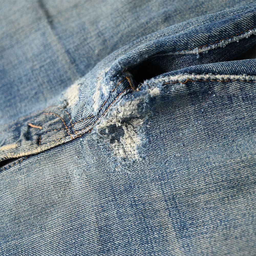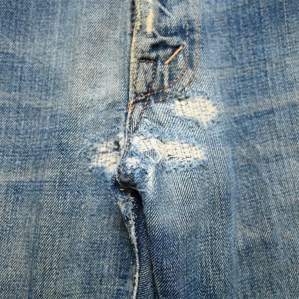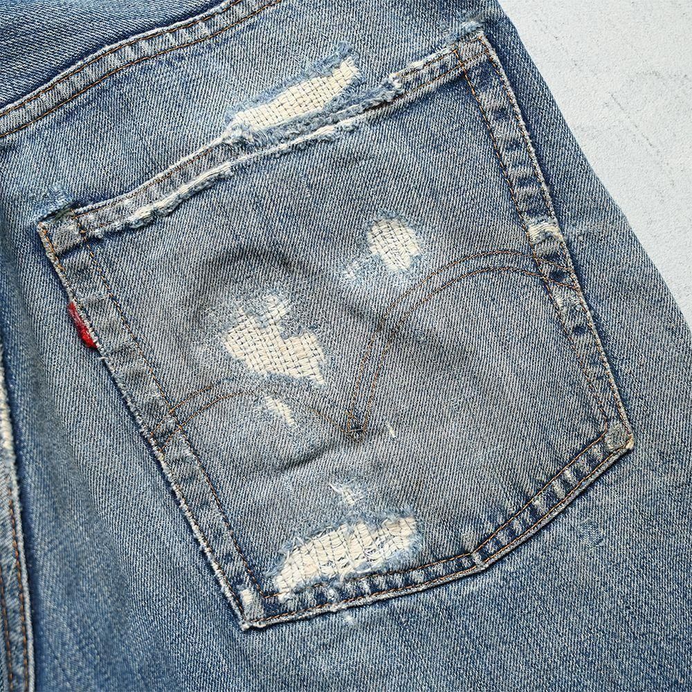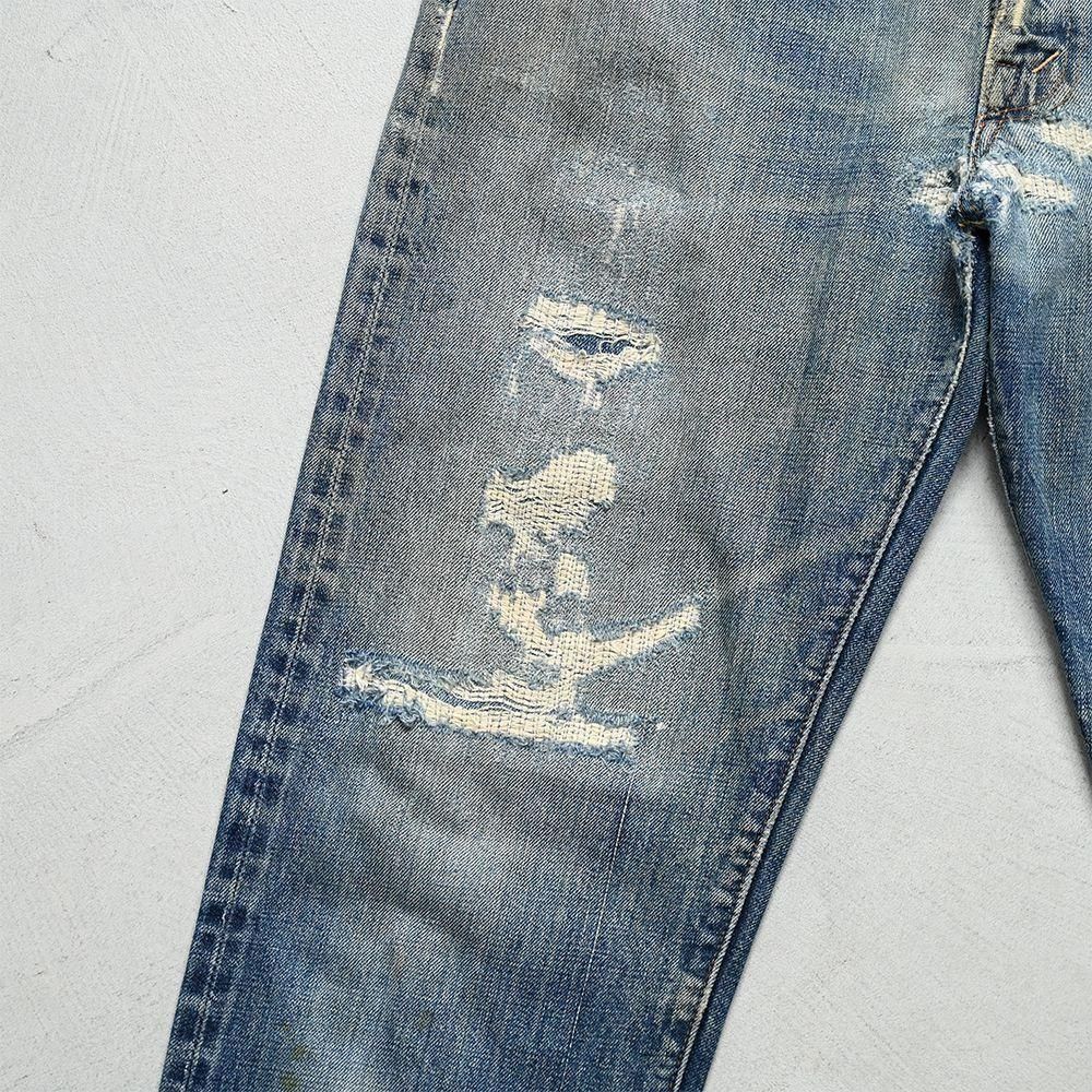 メリハリがあってVINTAGEらしい迫力のある色落ちが魅力の一本。ダメージを活かしたリペアが最高すぎます。