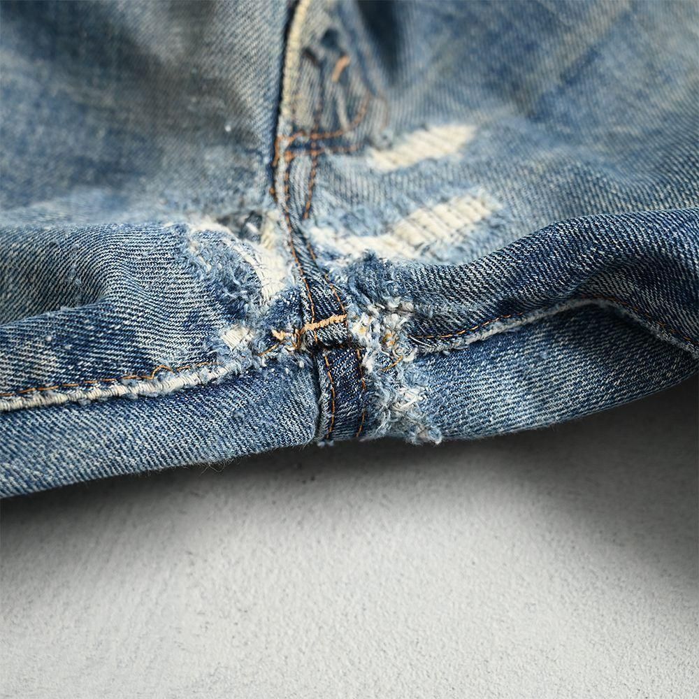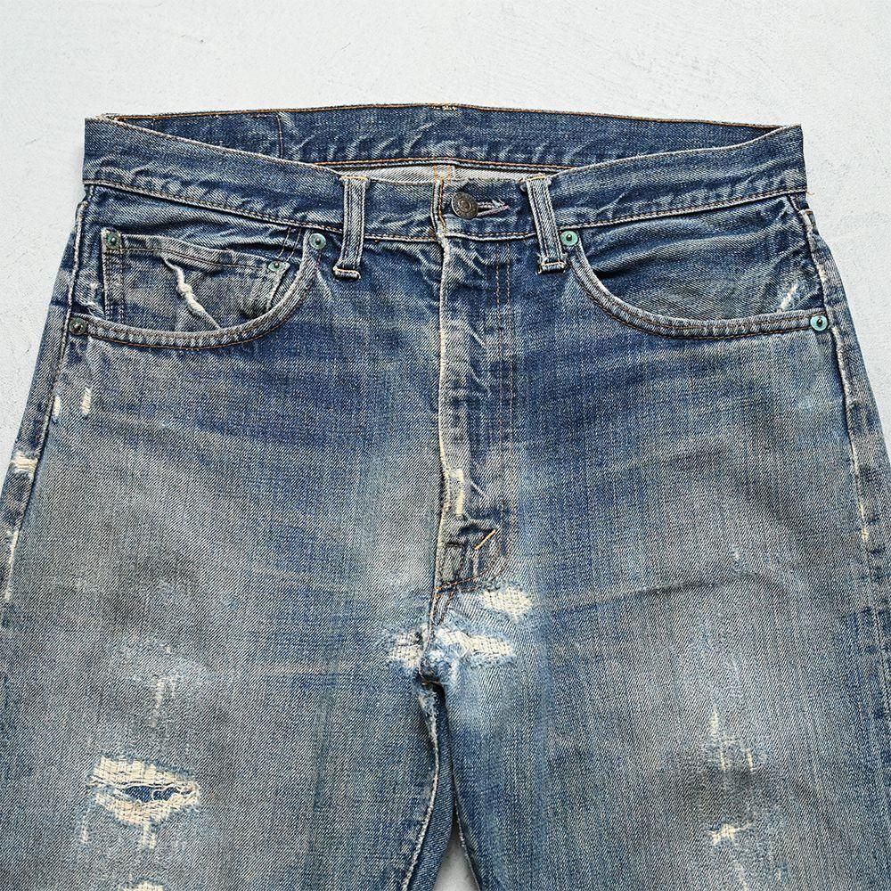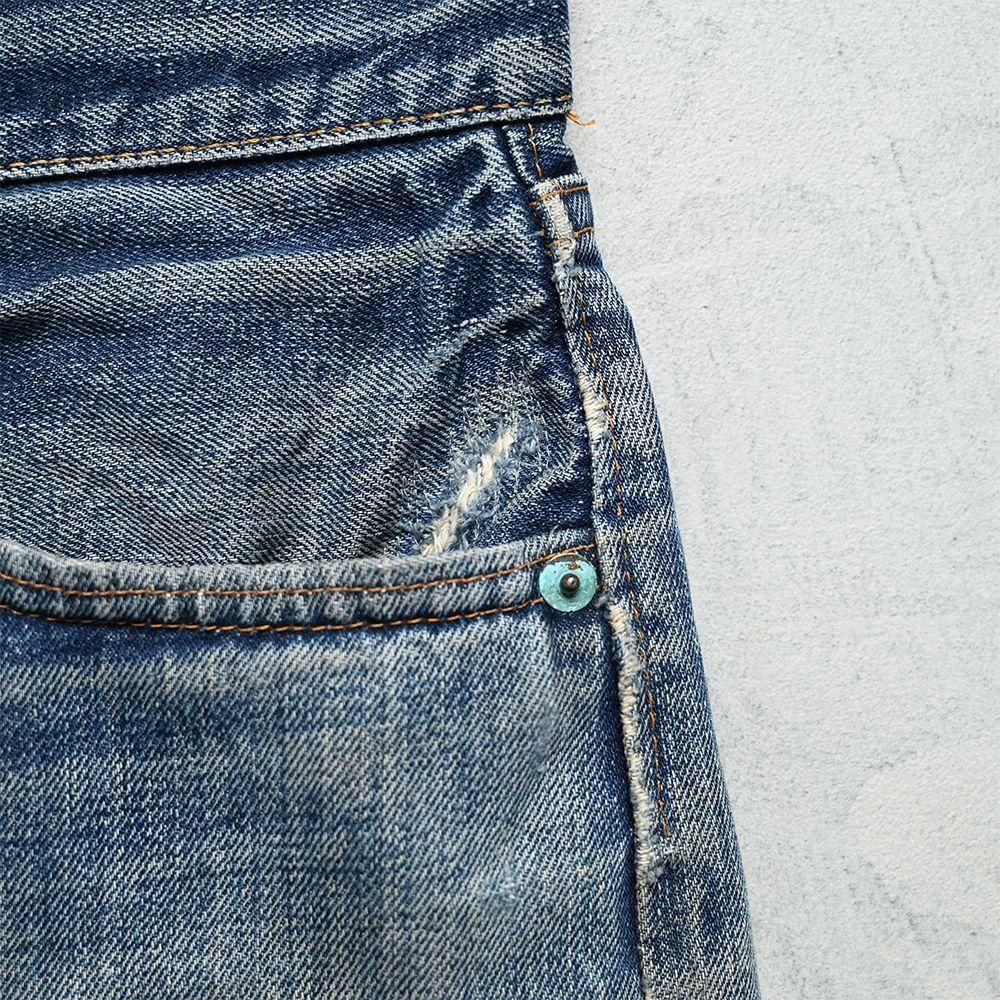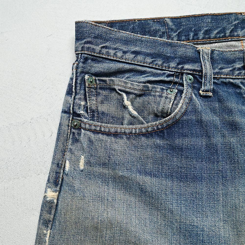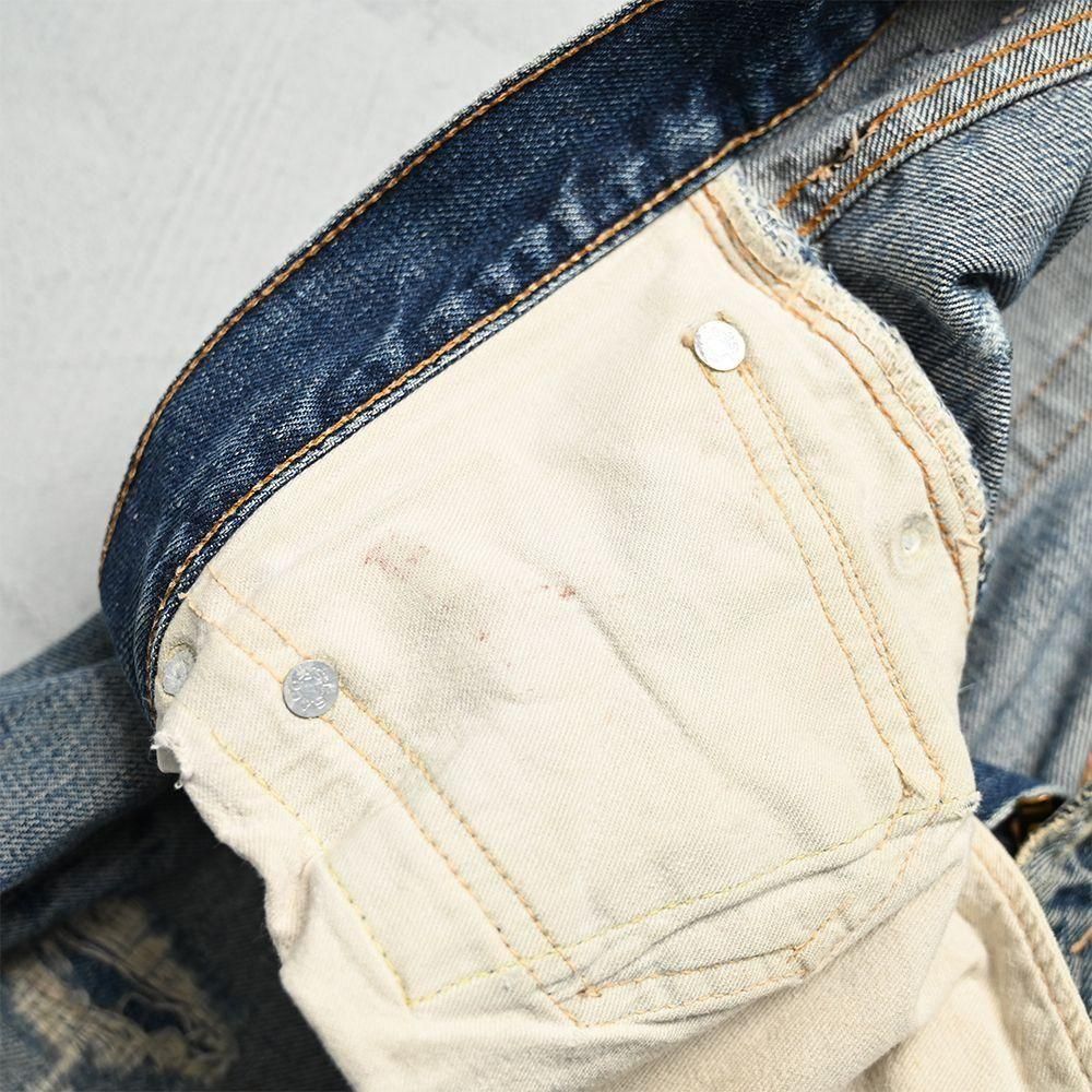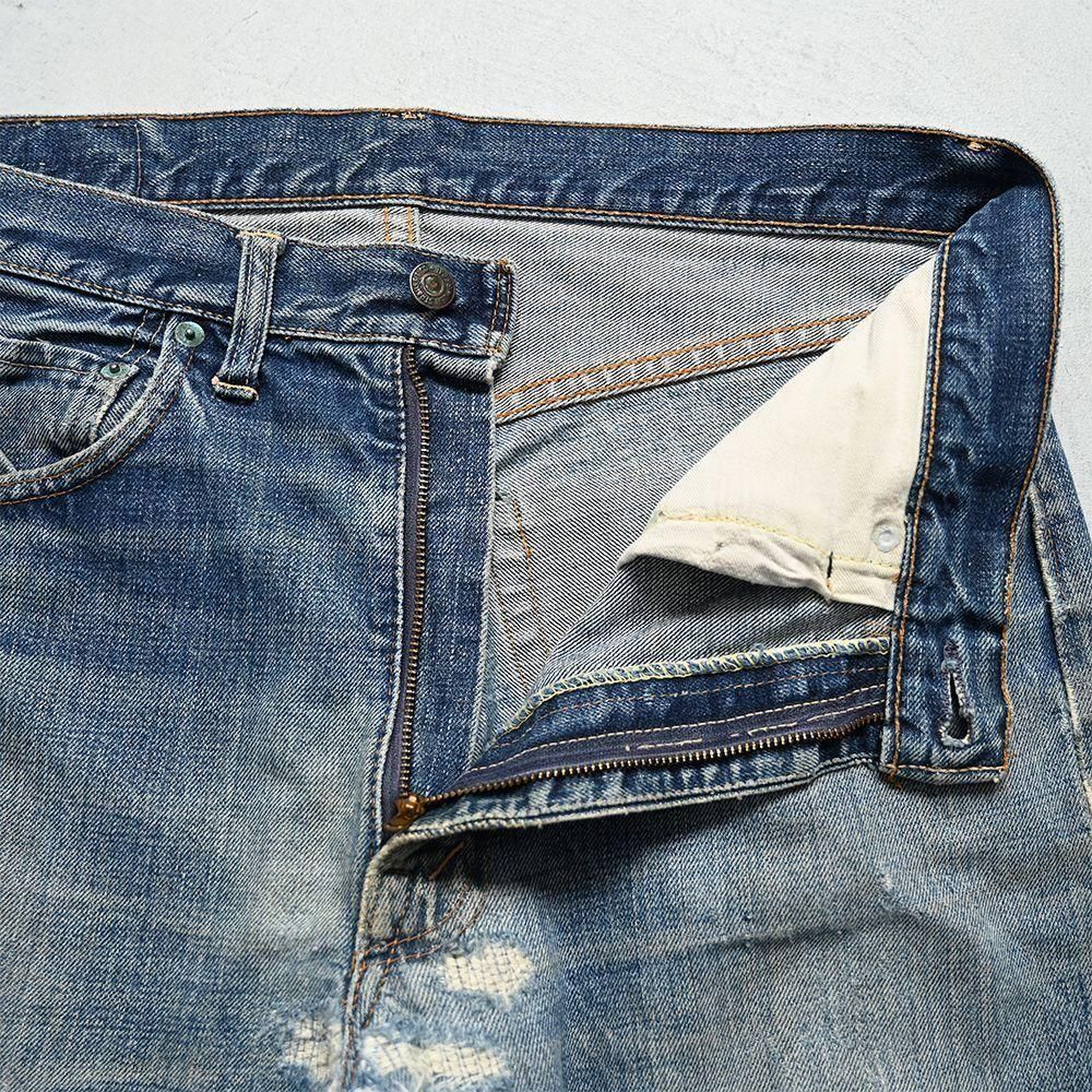 メリハリがあってVINTAGEらしい迫力のある色落ちが魅力の一本。ダメージを活かしたリペアが最高すぎます。