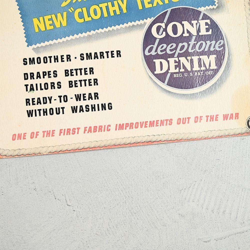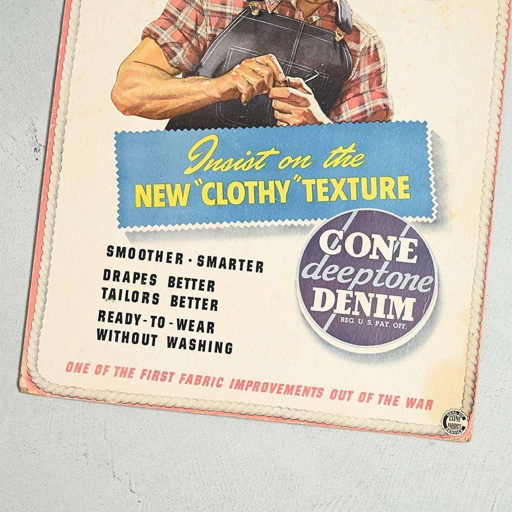 1940's CONE MILLS "DEEP TONE DENIM" ADVERTISING SIGN BORD
