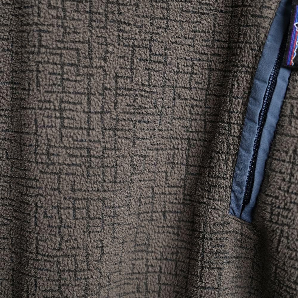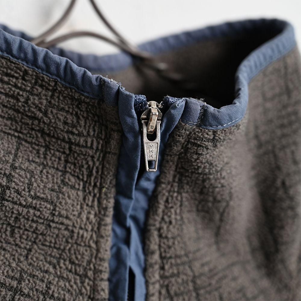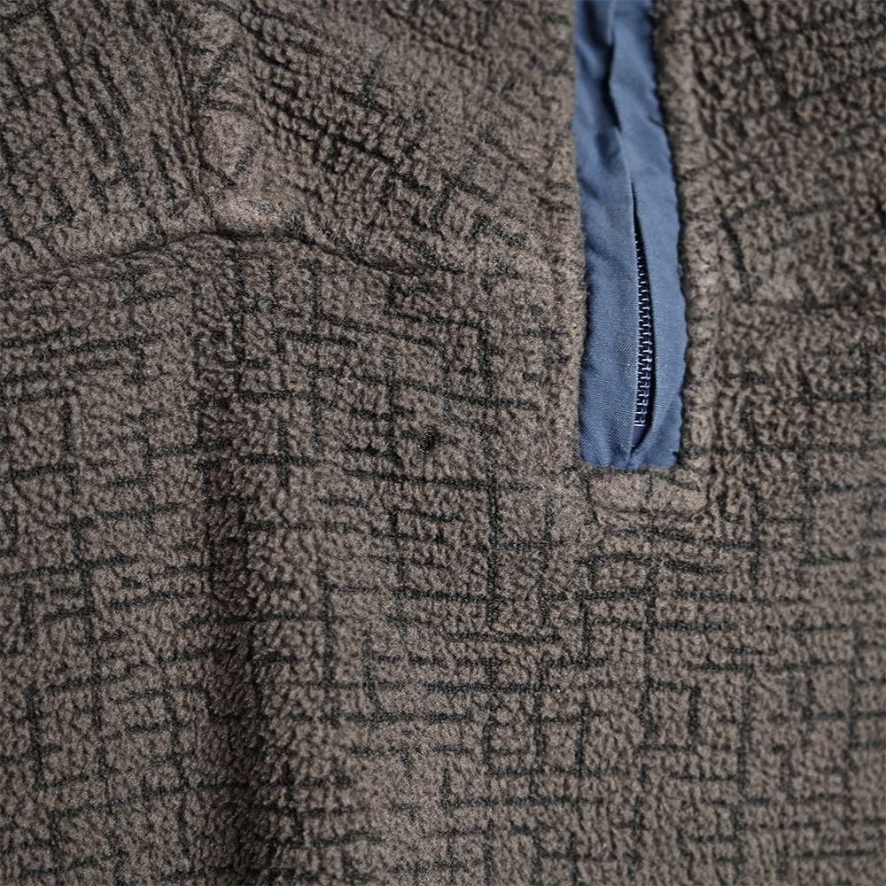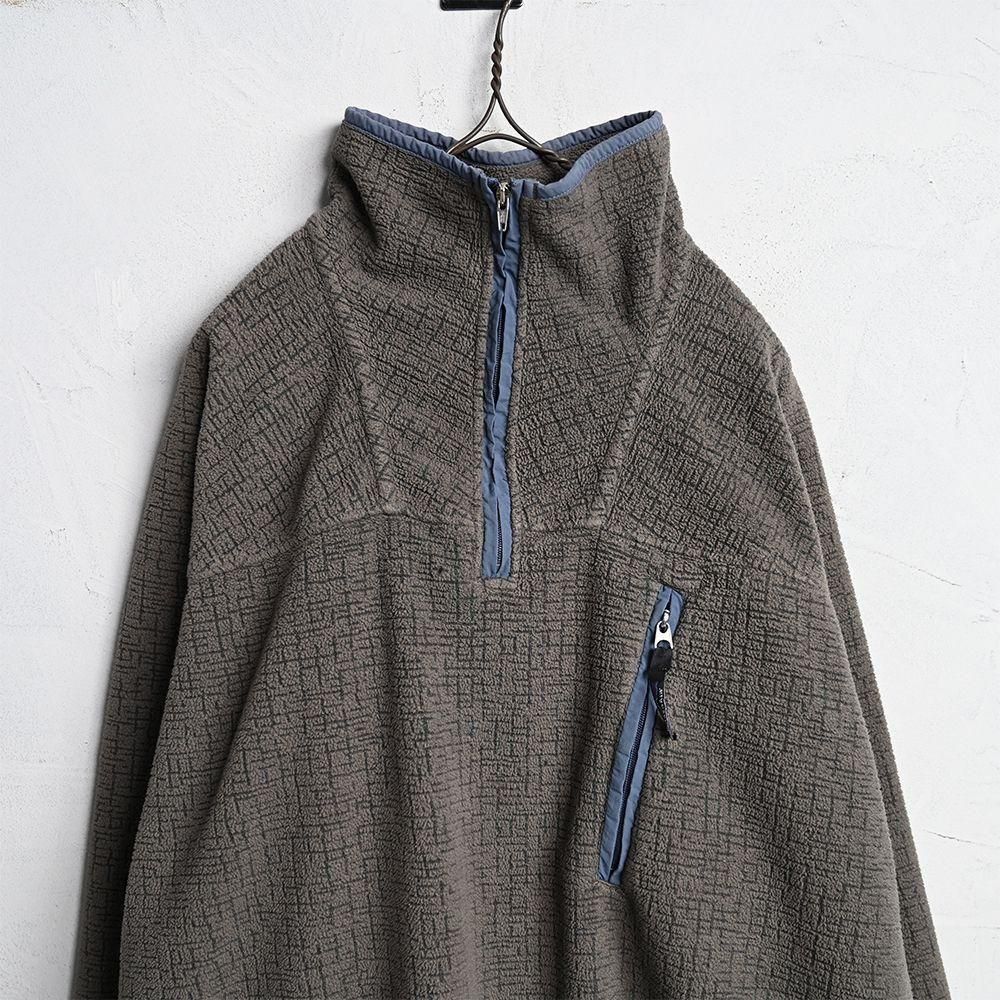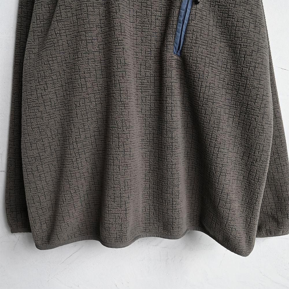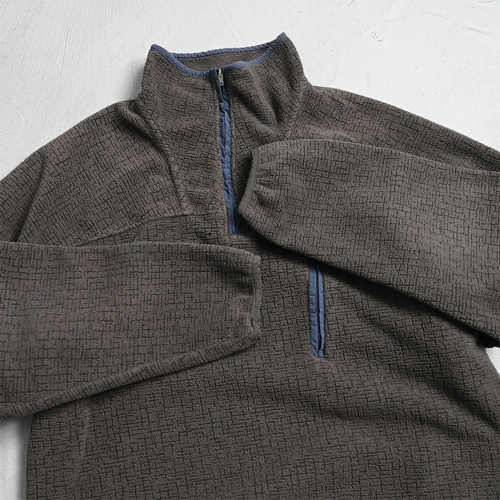 プルオーバーでハーフジップ仕様、斜め縦ポケットなど目を惹くディティールが多く搭載されたグッドフリース。