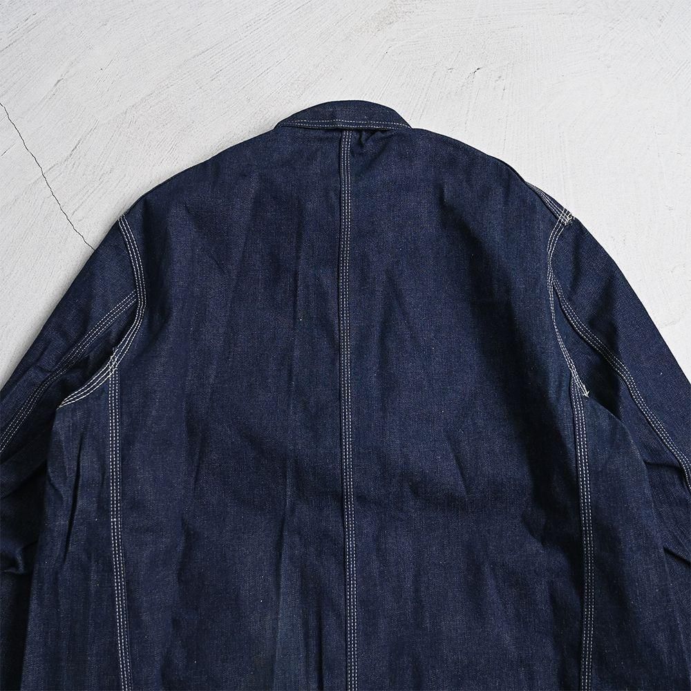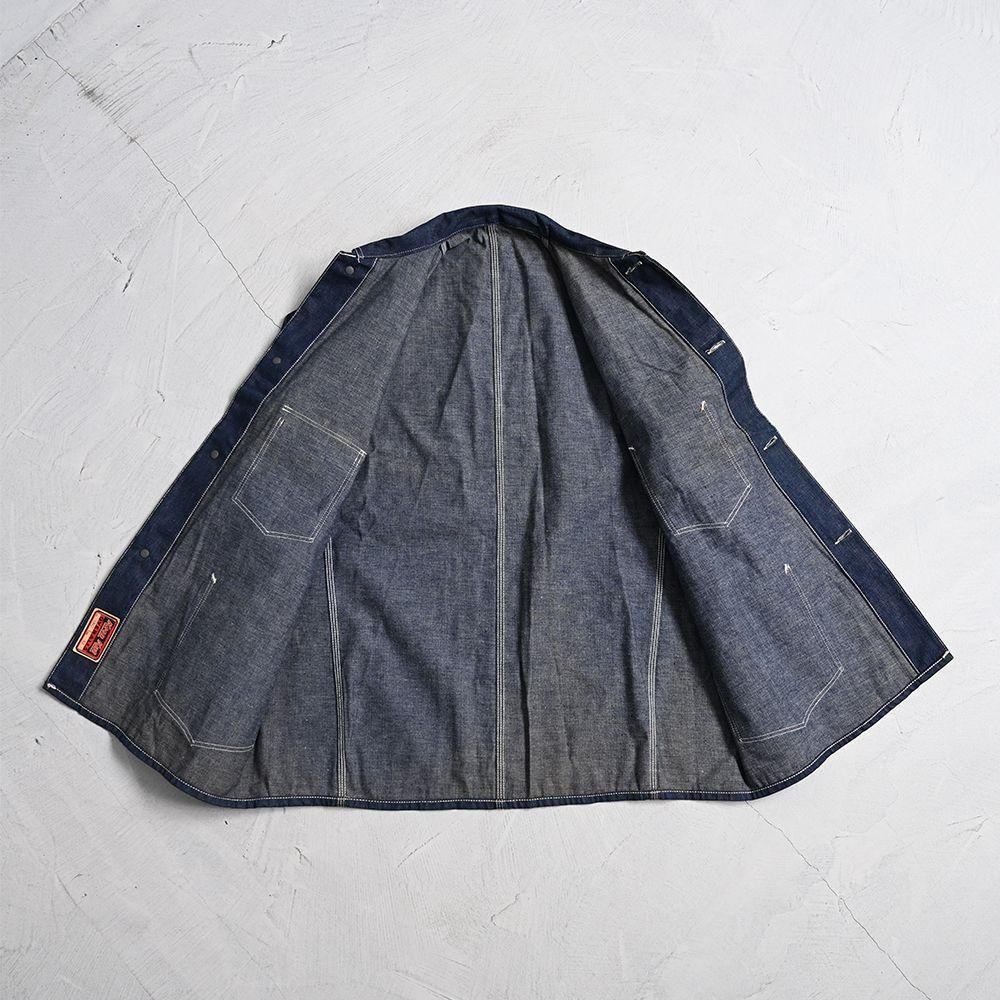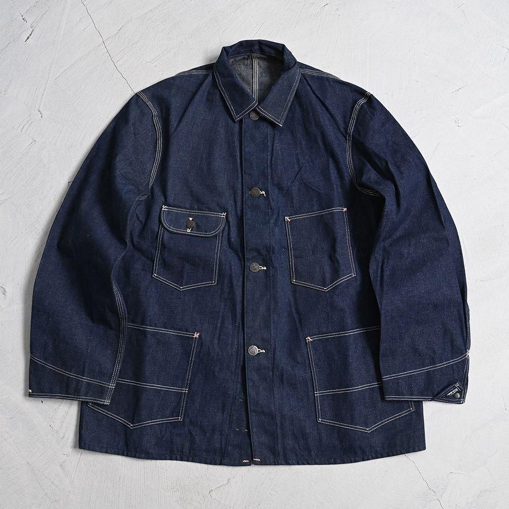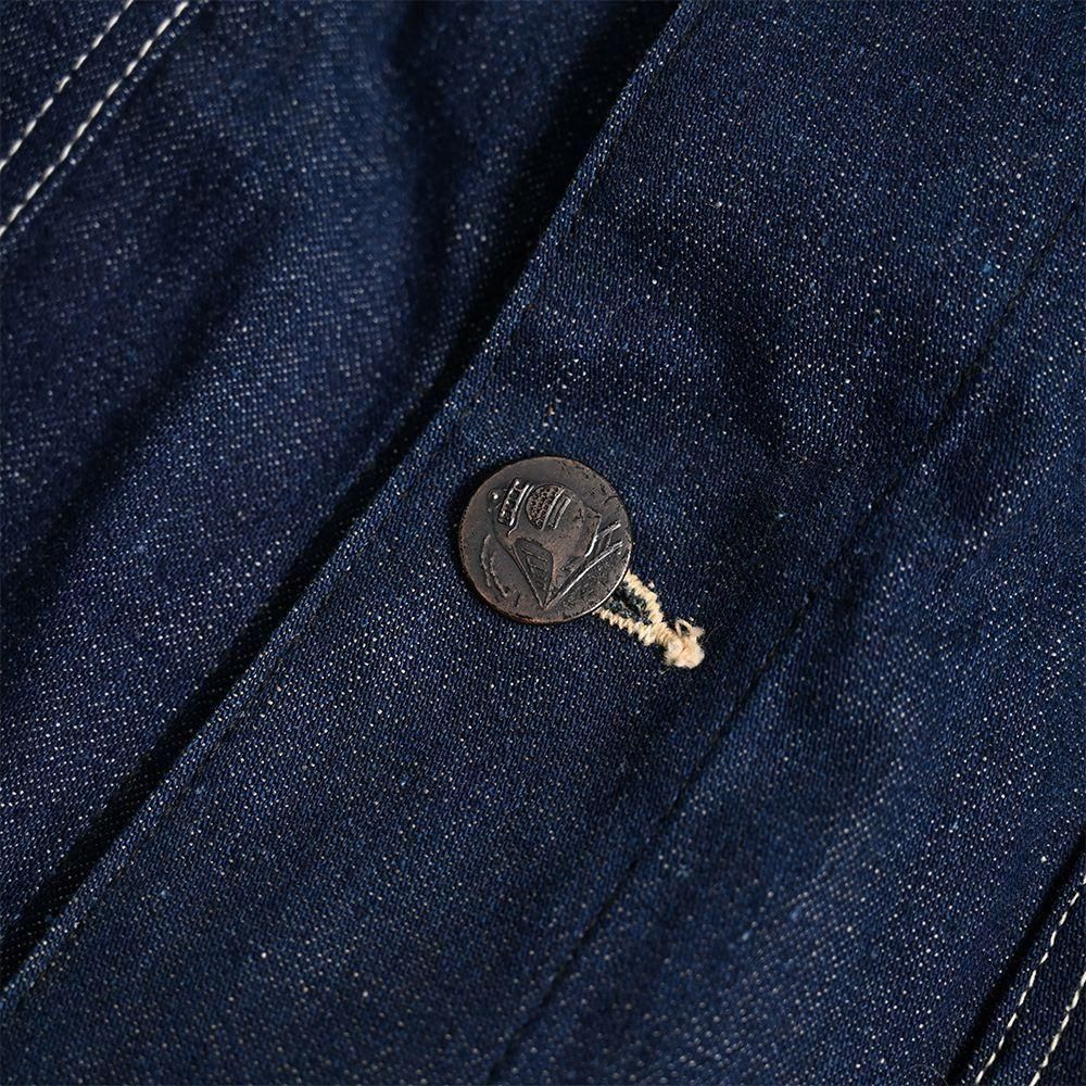 同年代のブランドによっては、チンストラップ仕様、フロントがチェンジボタン仕様だったりとアイコン的なディテールが特徴の個体も多数存在しますが、逆に削ぎ落とされたこのようなシンプルさが魅力のカバーオールです。