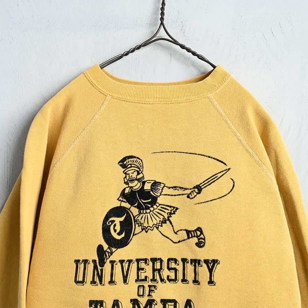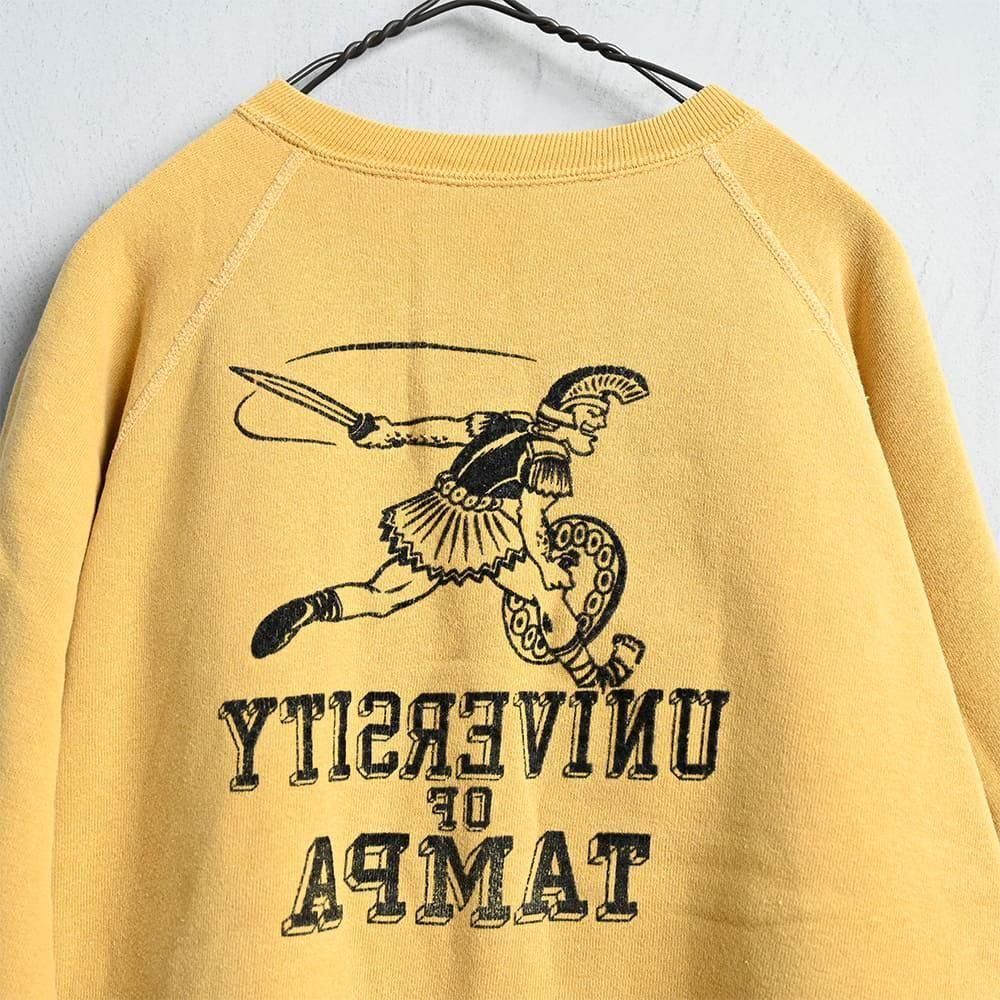 Around 1960's〜 "UNIVERSITY OF TAMPA" BLACK FLOCK PRINT SWEAT SHIRT with BACKPRINT