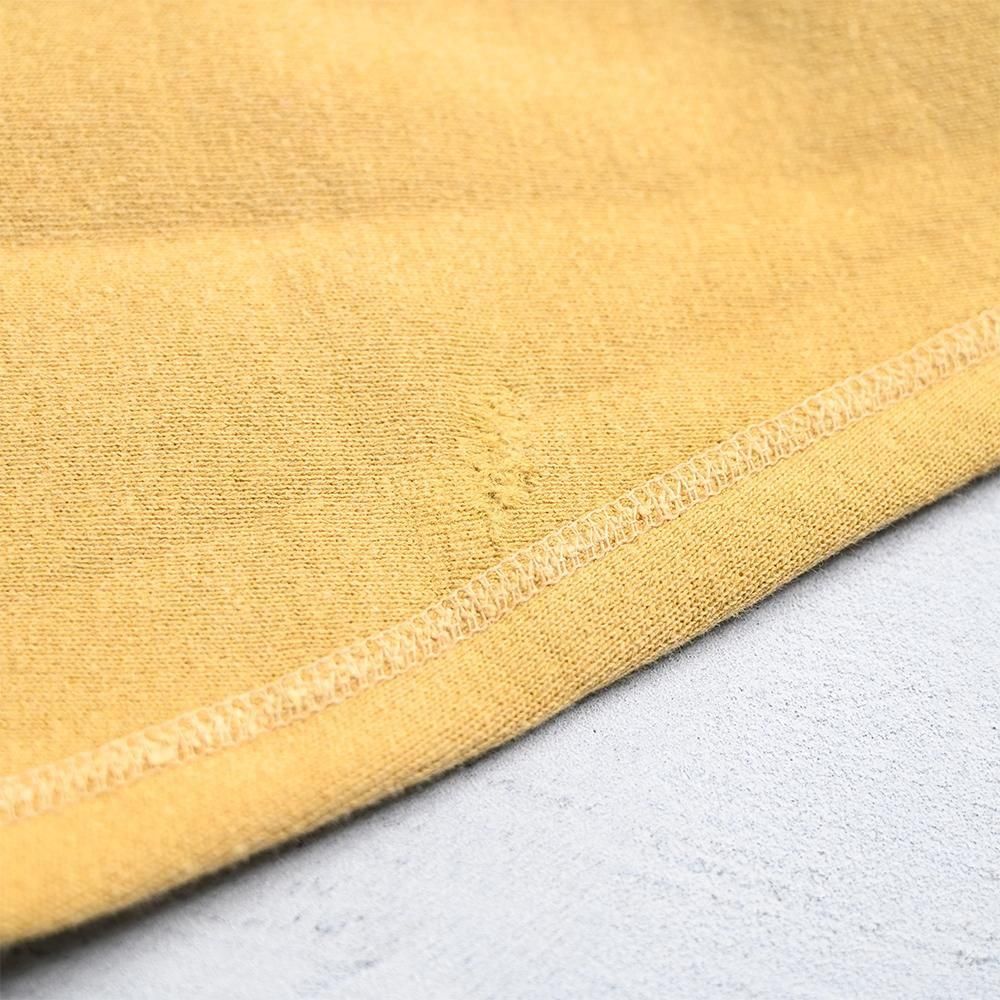 マスタードボディに両面フロッキープリントの役揃いな一枚を販売致します。
