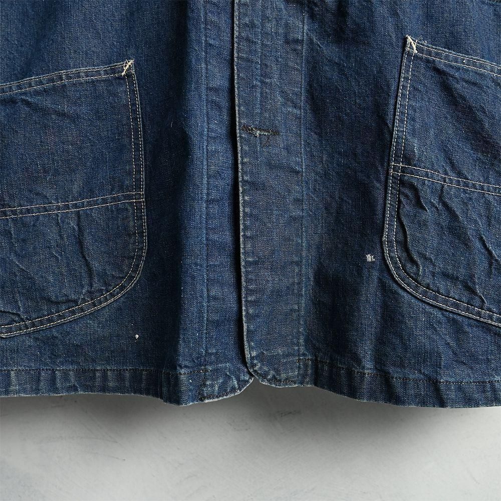 詳細:GOOD CONDITION。ボタンからジッパー仕様にモディファイドされています。後方右裾上付近に糸抜けのような解れ箇所あり。僅かなスレ・解れ・細かなペンキ飛び箇所あり。全体的に目立つ汚れ・ダメージ等なく綺麗な良い状態です。