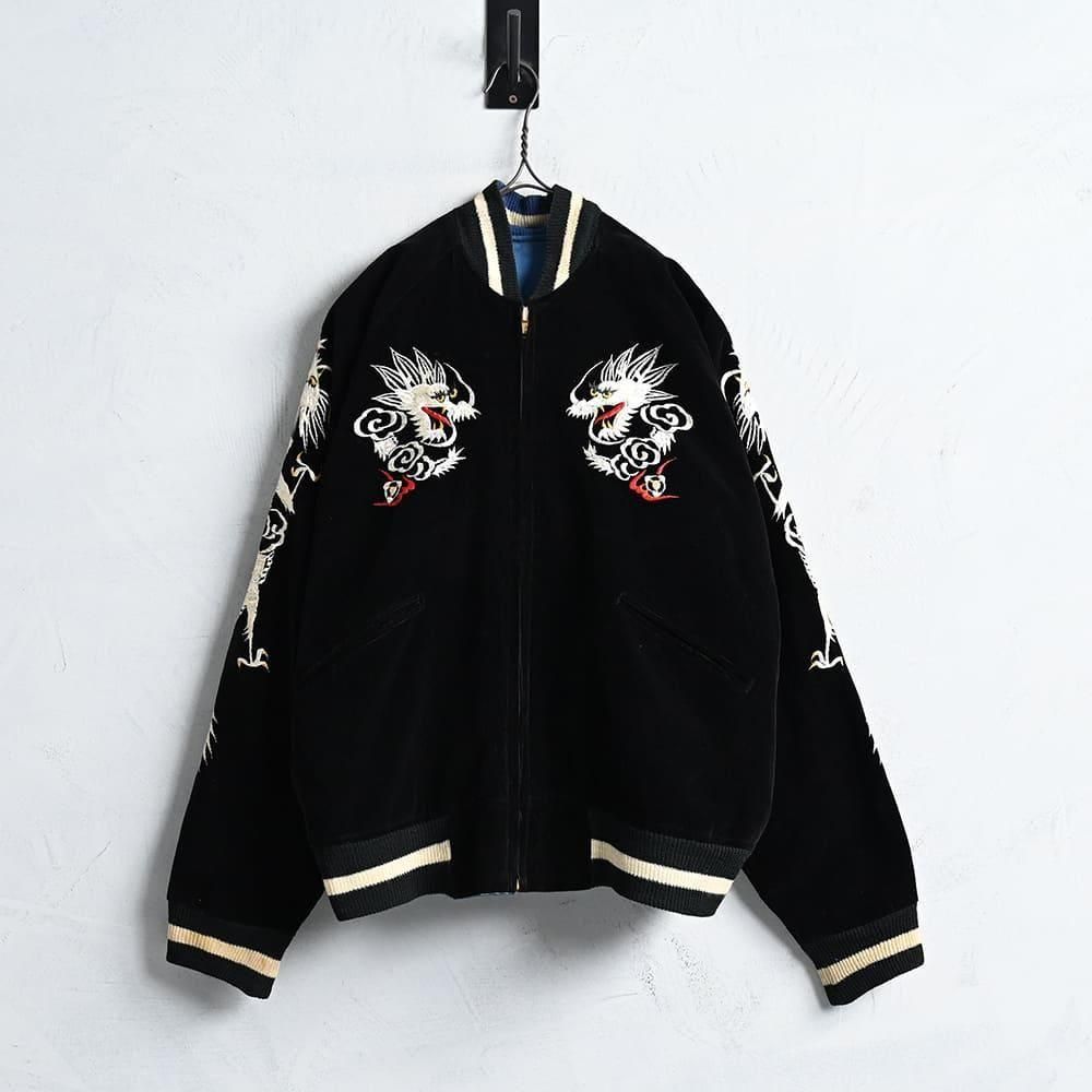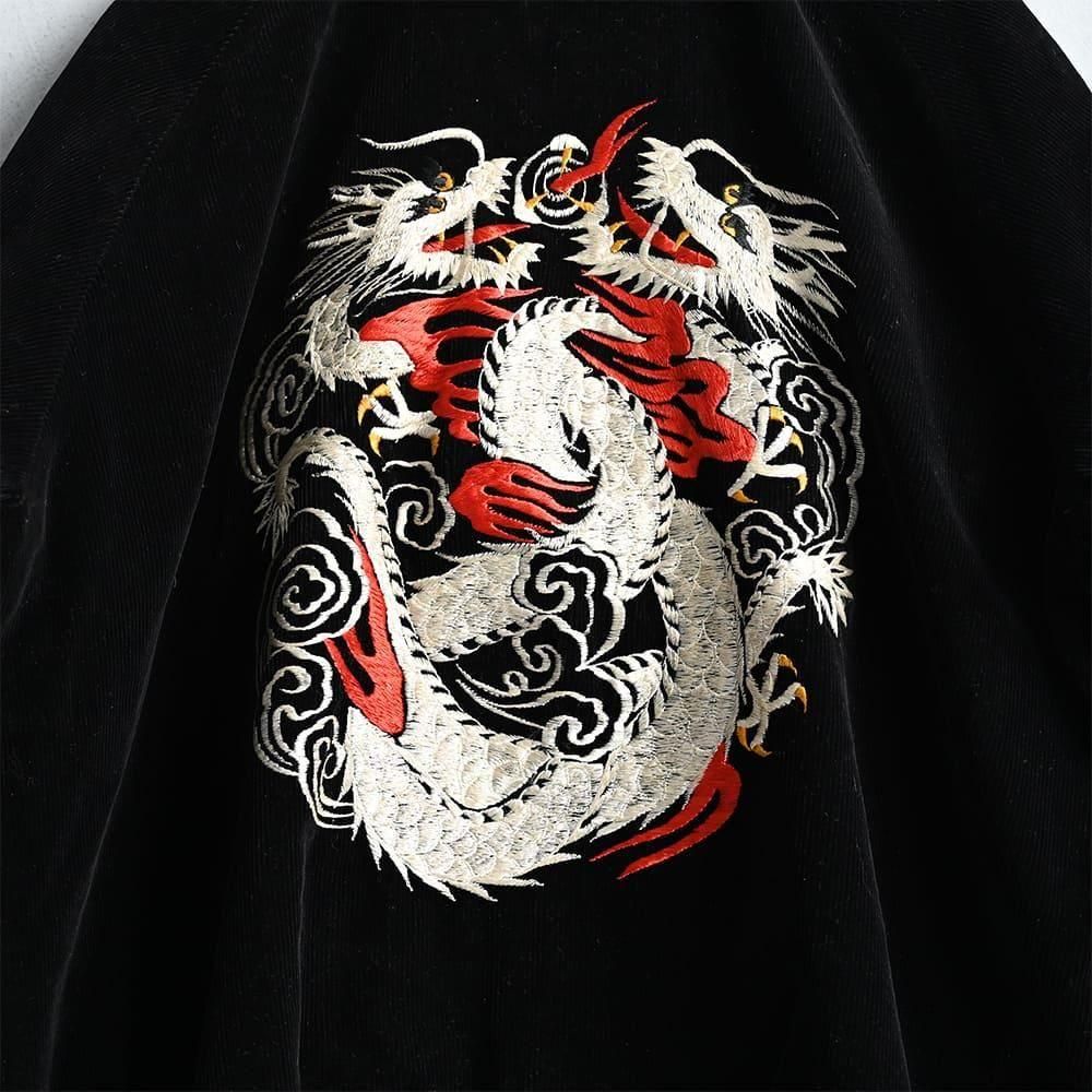 双竜刺繍にブラックコーデュロイクロスのレアピース