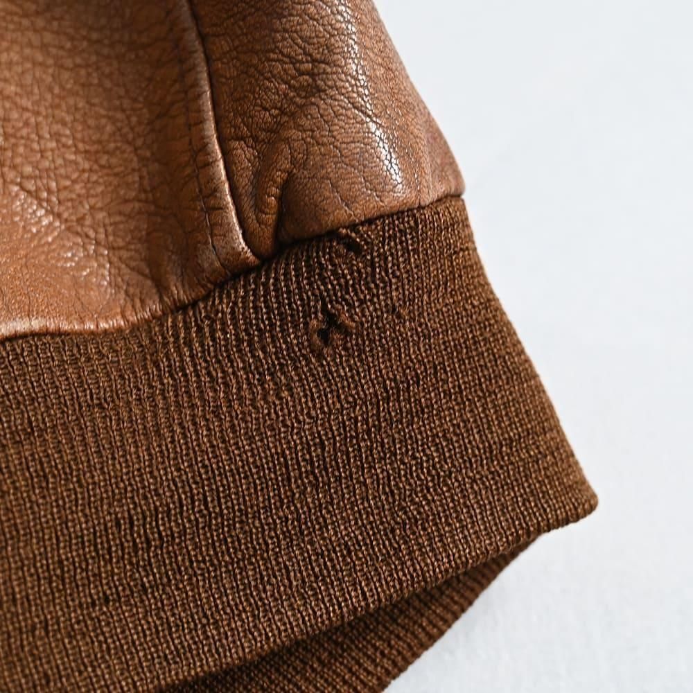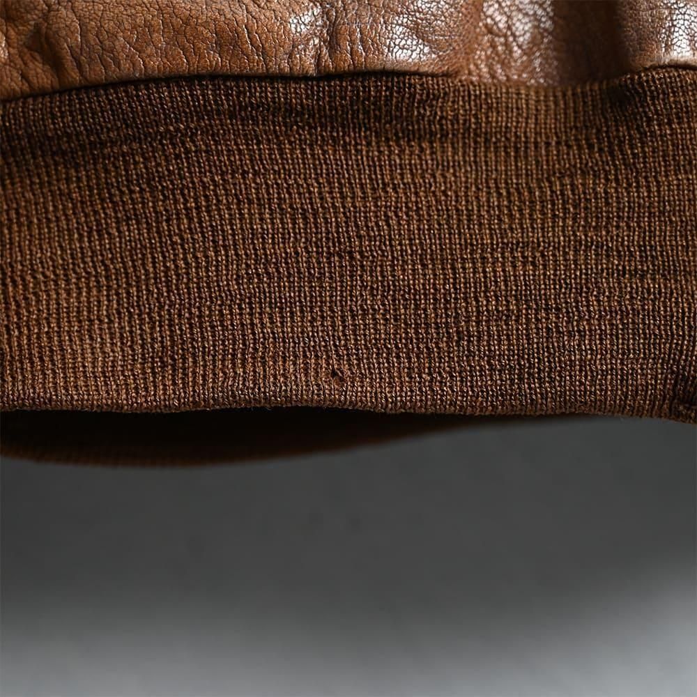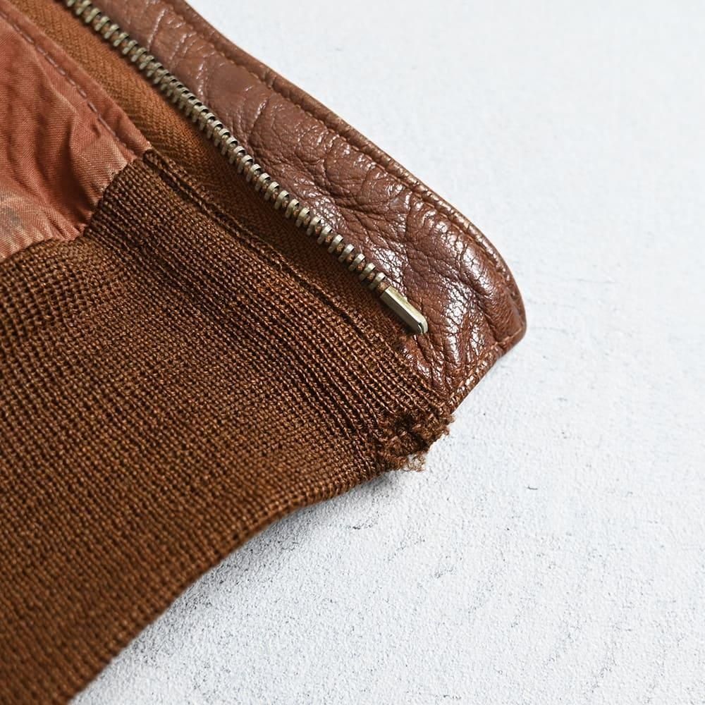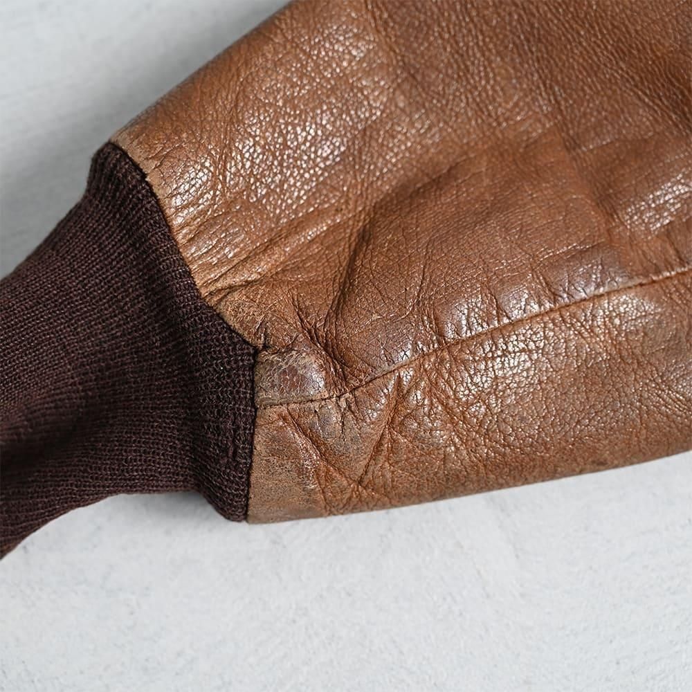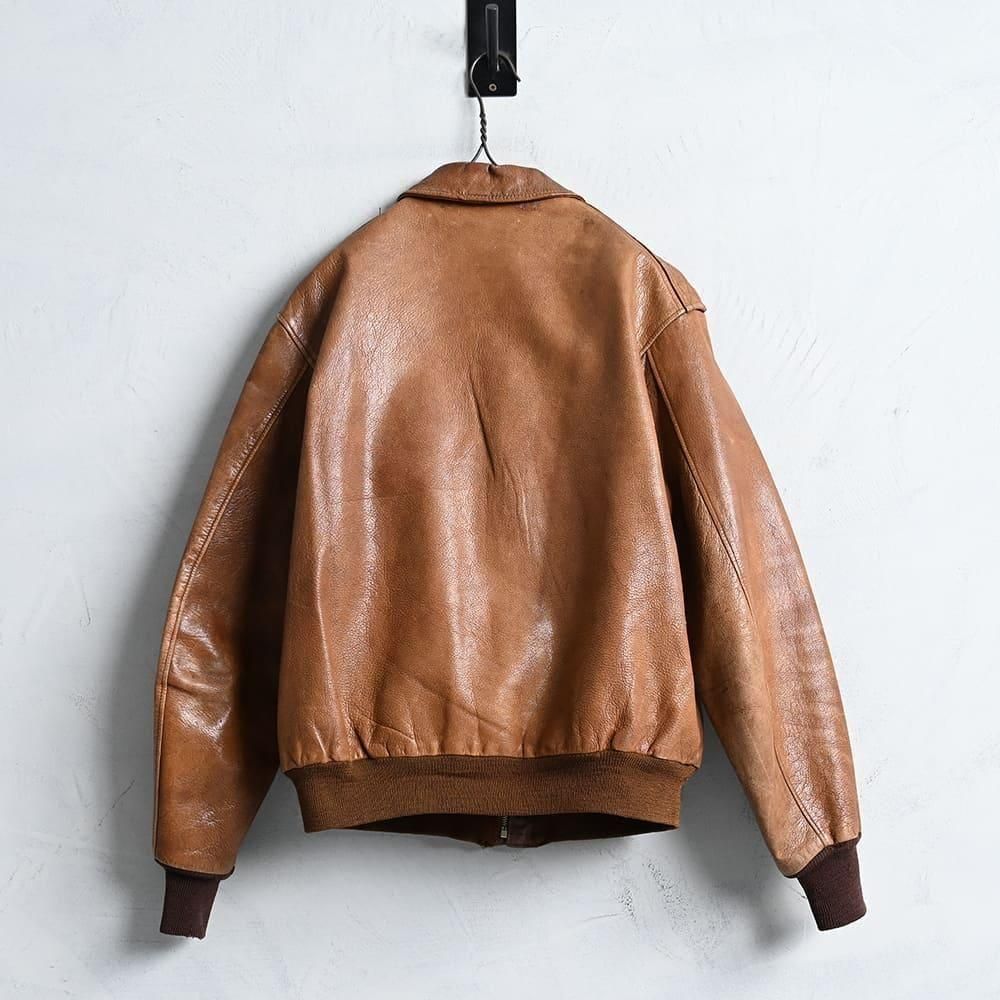詳細:GOOD CONDITION。左胸ネームプレートを外したステッチ痕あり。各リブに解れ小穴・ダメージ解れ箇所あり。内側のライニングにダメージ箇所あり。レザー表面に所々スレ・小傷あり。全体的に目立つ汚れもダメージらしいダメージも無く良い状態ですよ。