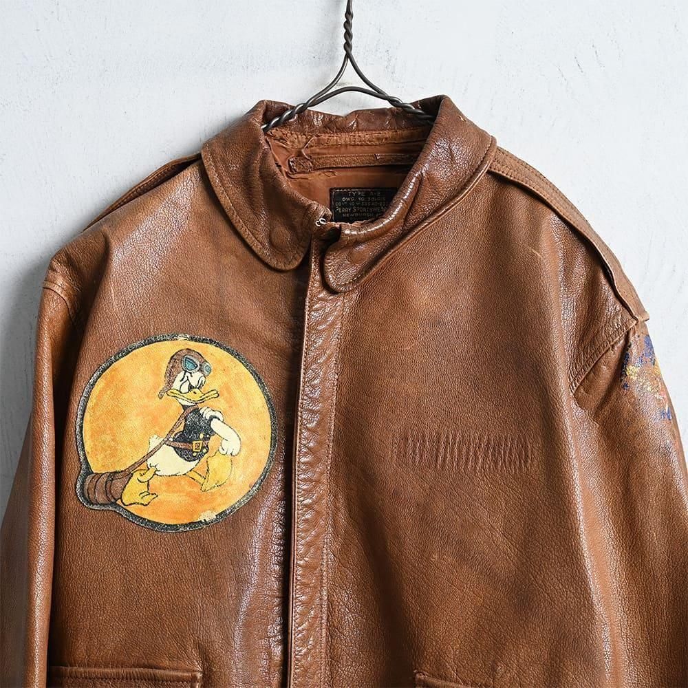 USAAF A-2 "GOAT SKIN" FLIGHT JACKET with SQUADRON PATCH('42/by PERRY SPORTSWEAR/SZ 44)