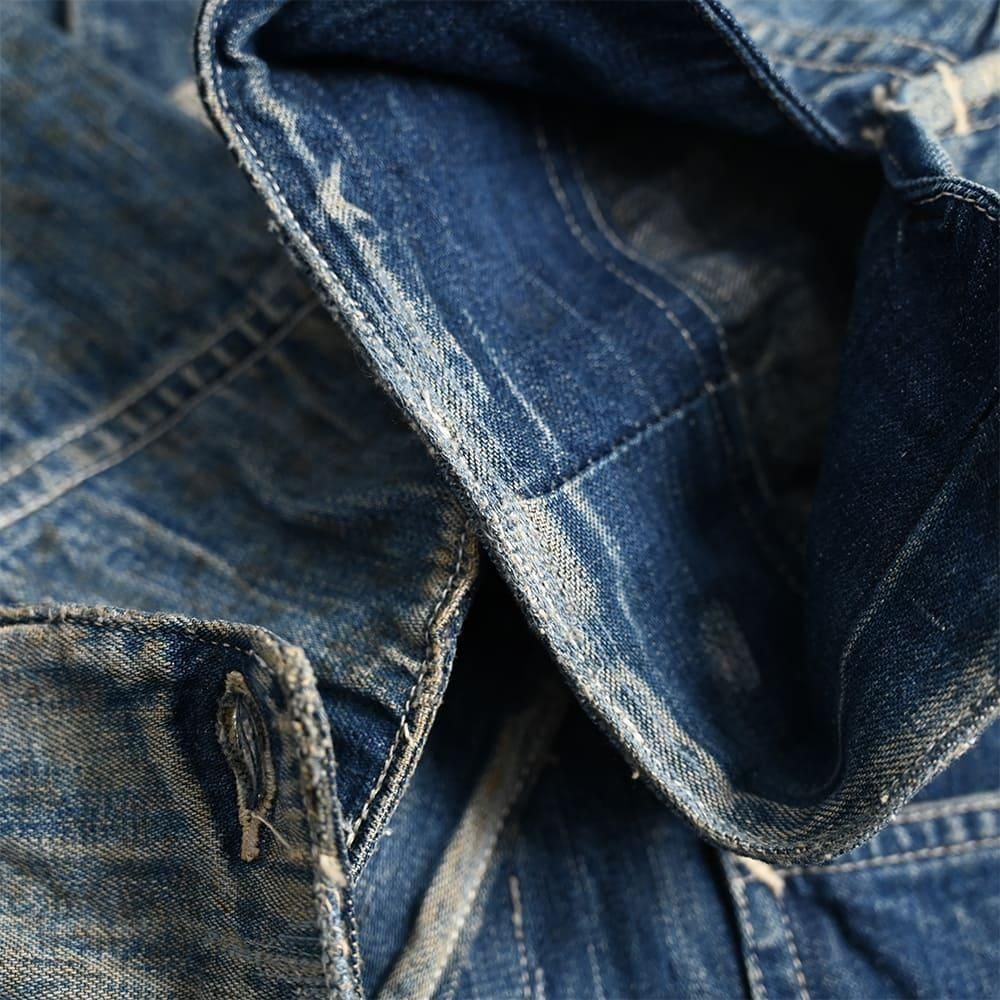 詳細:GOOD USED CONDITION。経年の薄汚れ・シミあり。右肩に小穴あり。袖先にタタキリペアあり。襟や袖・シームにスレや生地の解れ・薄くなっている箇所あり。ステッチの解れ・リステッチあり。大きなダメージはなく良いUSEDコンディションです。