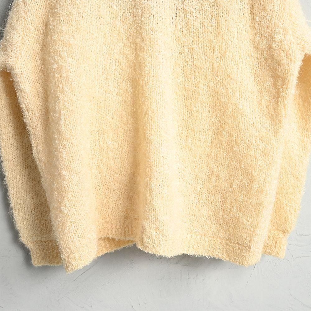 同年代のモヘアカーディガンとは一味違ったループヤーンの編地が最高ですよ。
