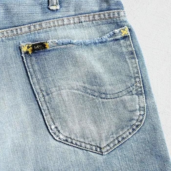 実寸W33L29インチ前後、ロングレングスの多いLeeにおいて貴重なショートレングス個体。